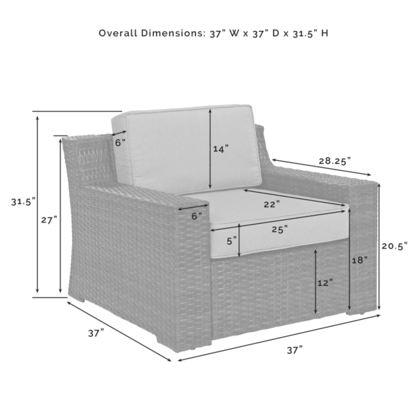 Q: What pieces are included in the Crosley Beaufort 6-Piece Outdoor Wicker Conversation Set?