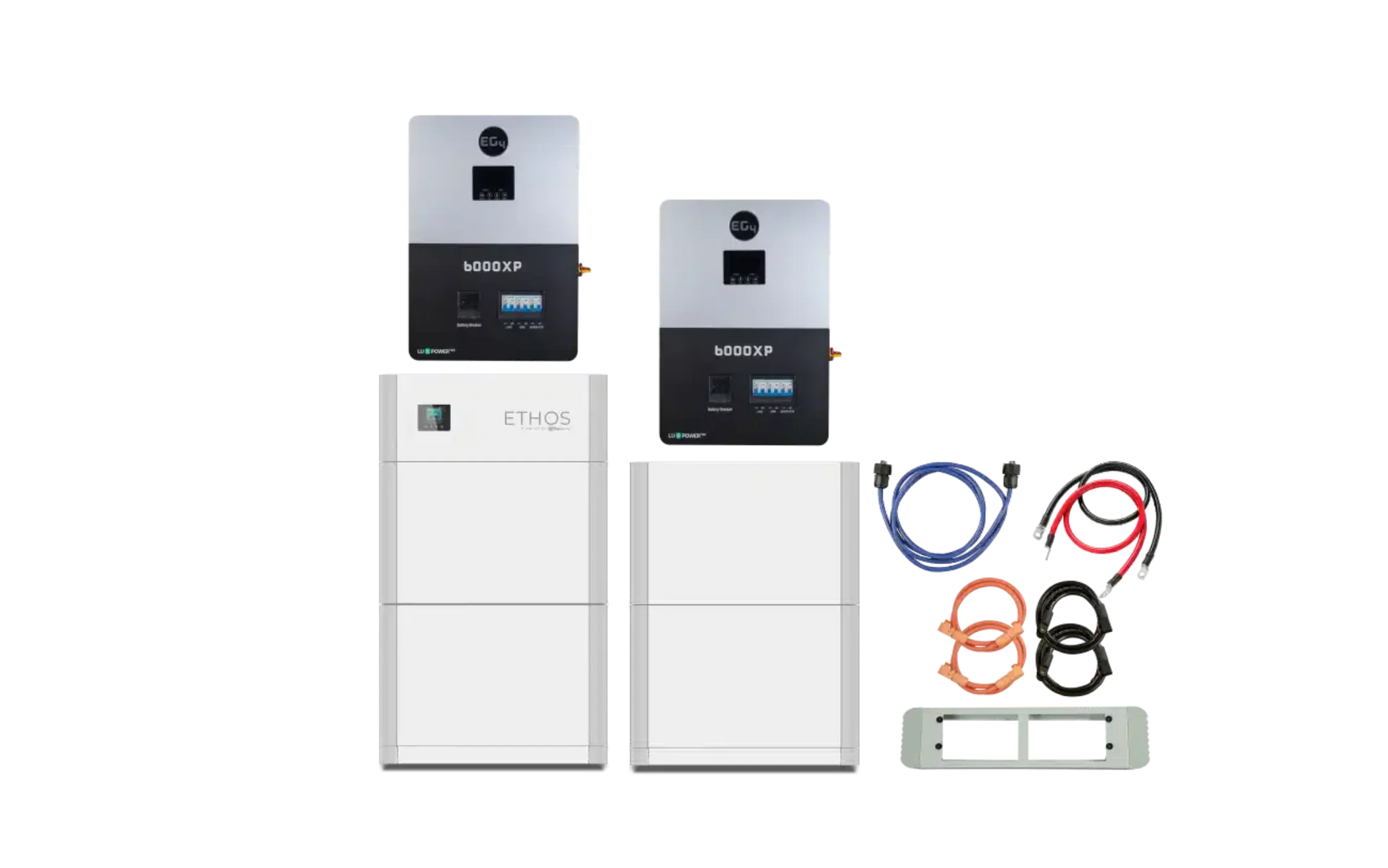 But that’s not all. We pair our ETHOS with two cutting-edge 6000W split-phase inverter-chargers from EG4, which each feature their own LCD touch screen display, 2 MPPT inputs, an integrated UPS module for seamless on and off-grid switching, and the ability to handle PV arrays of up to 8000W. Plus, through their smart load control, AC coupling abilities, and peak shaving function, you can meet your power needs and protect your home against unstable grids or rolling blackouts, while seeing huge savings each month on your electric bill through peak shaving and time-of-use offsetting.