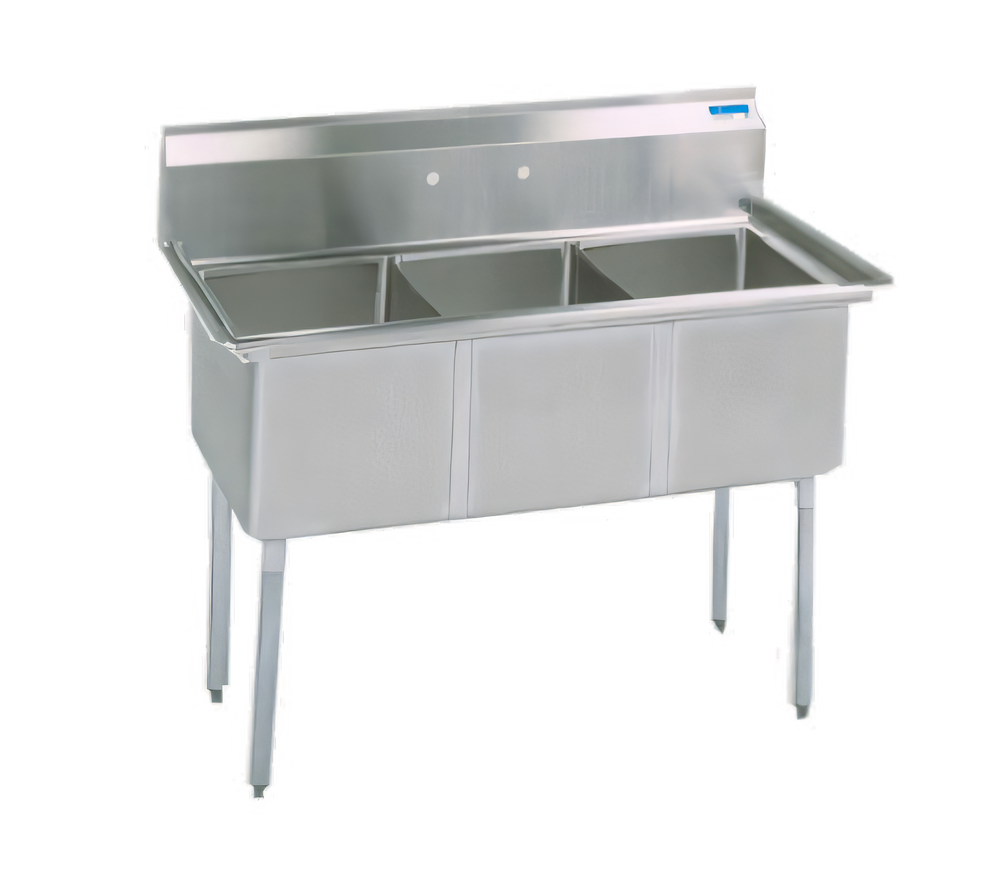 Efficient wash–rinse–sanitize workflow: Three separate 15" × 15" × 14" deep compartments allow staff to wash, rinse, and sanitize without cross-contamination.