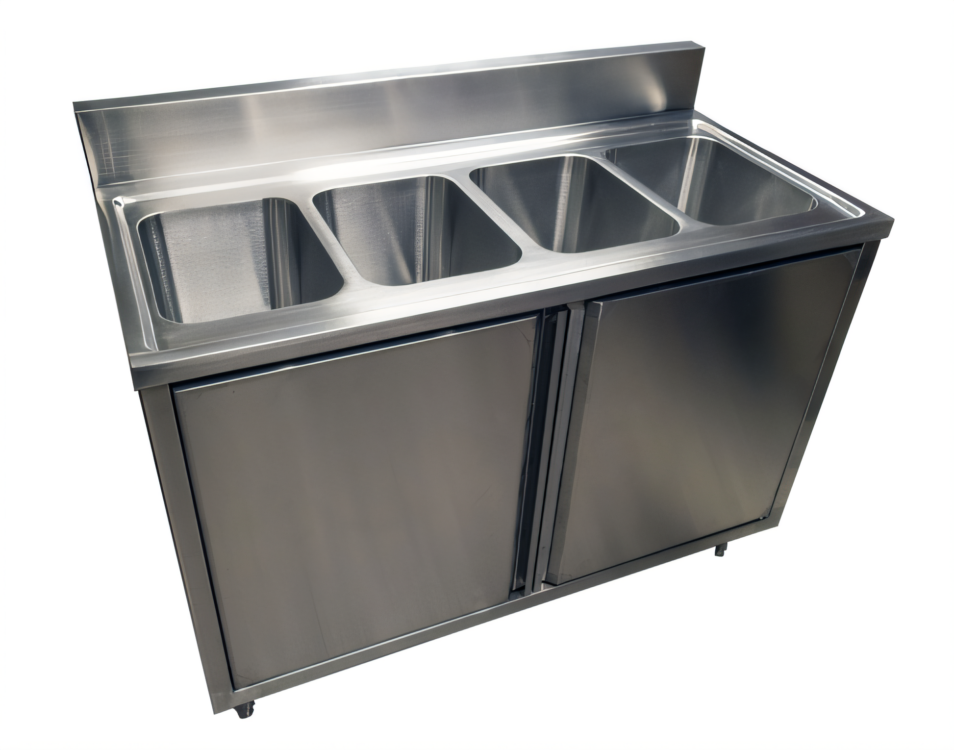 Built for high-volume prep and ware-washing, this commercial sink cabinet delivers four deep-drawn bowls, generous storage space, and rugged all-stainless construction—all in a 48" footprint that’s perfect for food-service kitchens, bars, and commissaries.