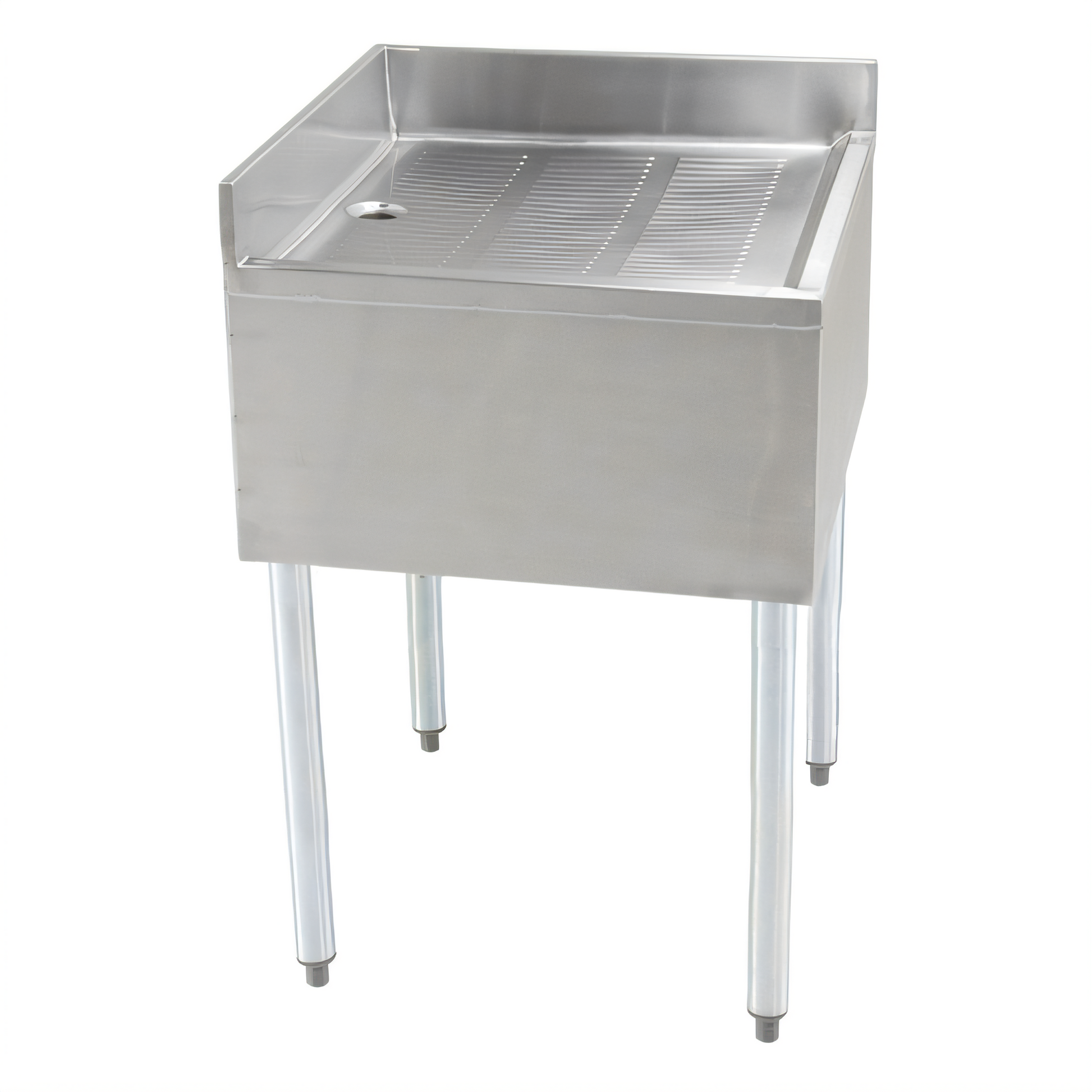 BK Resources UB4-21-CDB corner drainboard 21"x21" with BKDR-15CP drain, stainless steel legs/bracing and adjustable corrosion-resistant bullet feet.