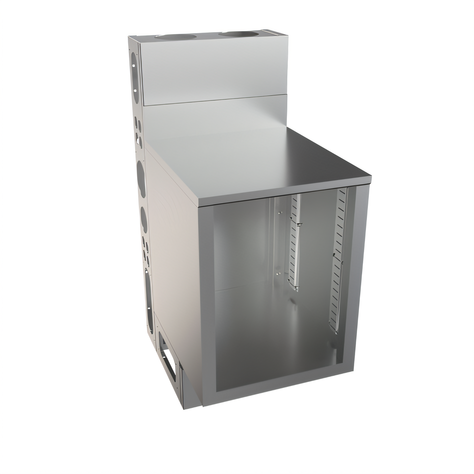 Ideal for storing glassware, backup liquor, and smallwares within easy reach.
