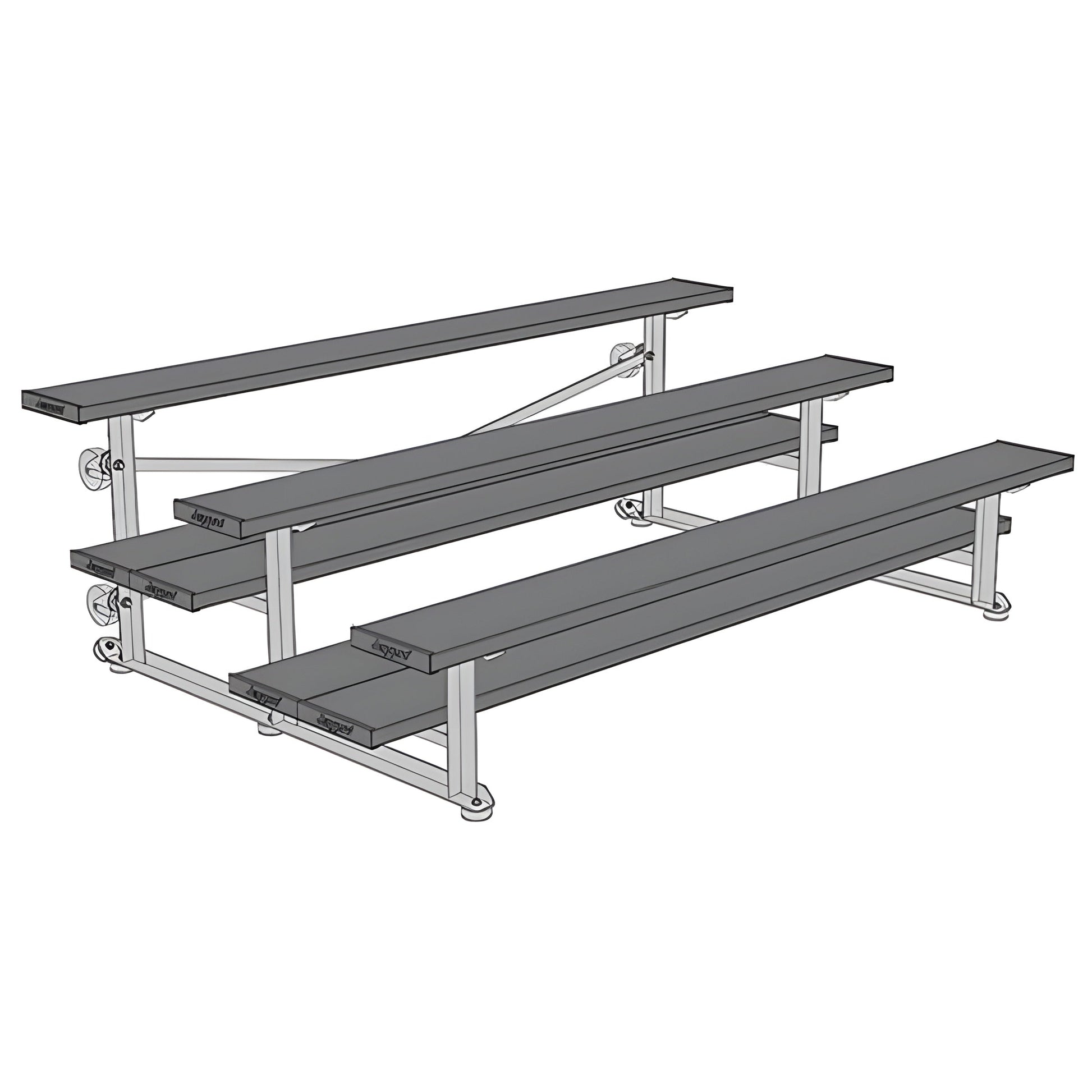 Lightweight and stable aluminum bleachers tip-and-roll for easy mobility and storage.