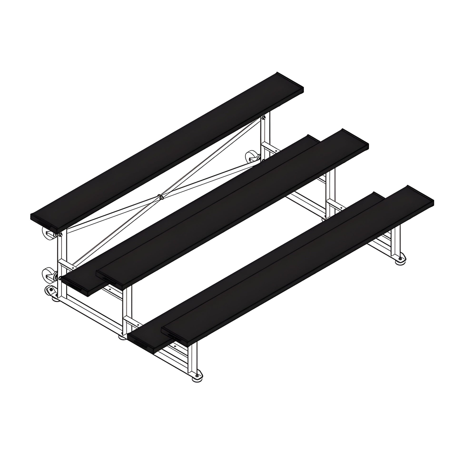 Lightweight and stable aluminum bleachers tip-and-roll for easy mobility and storage.