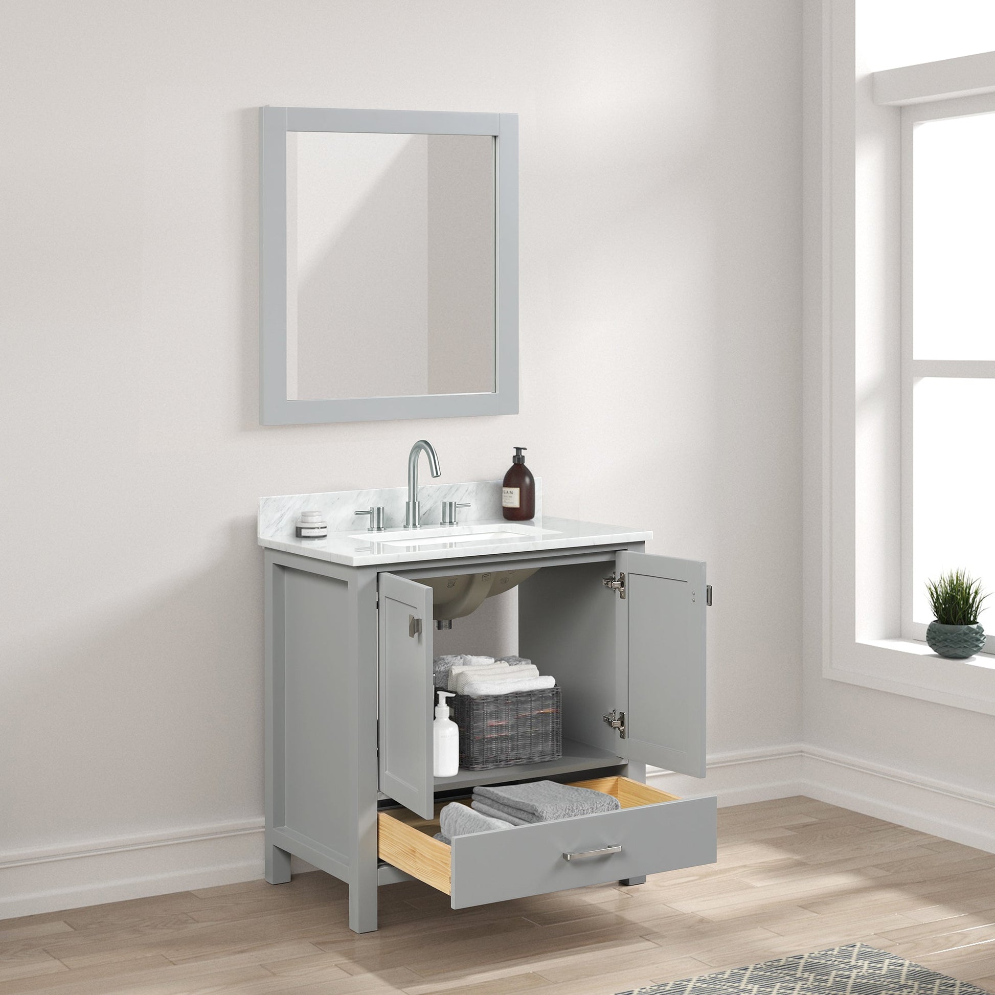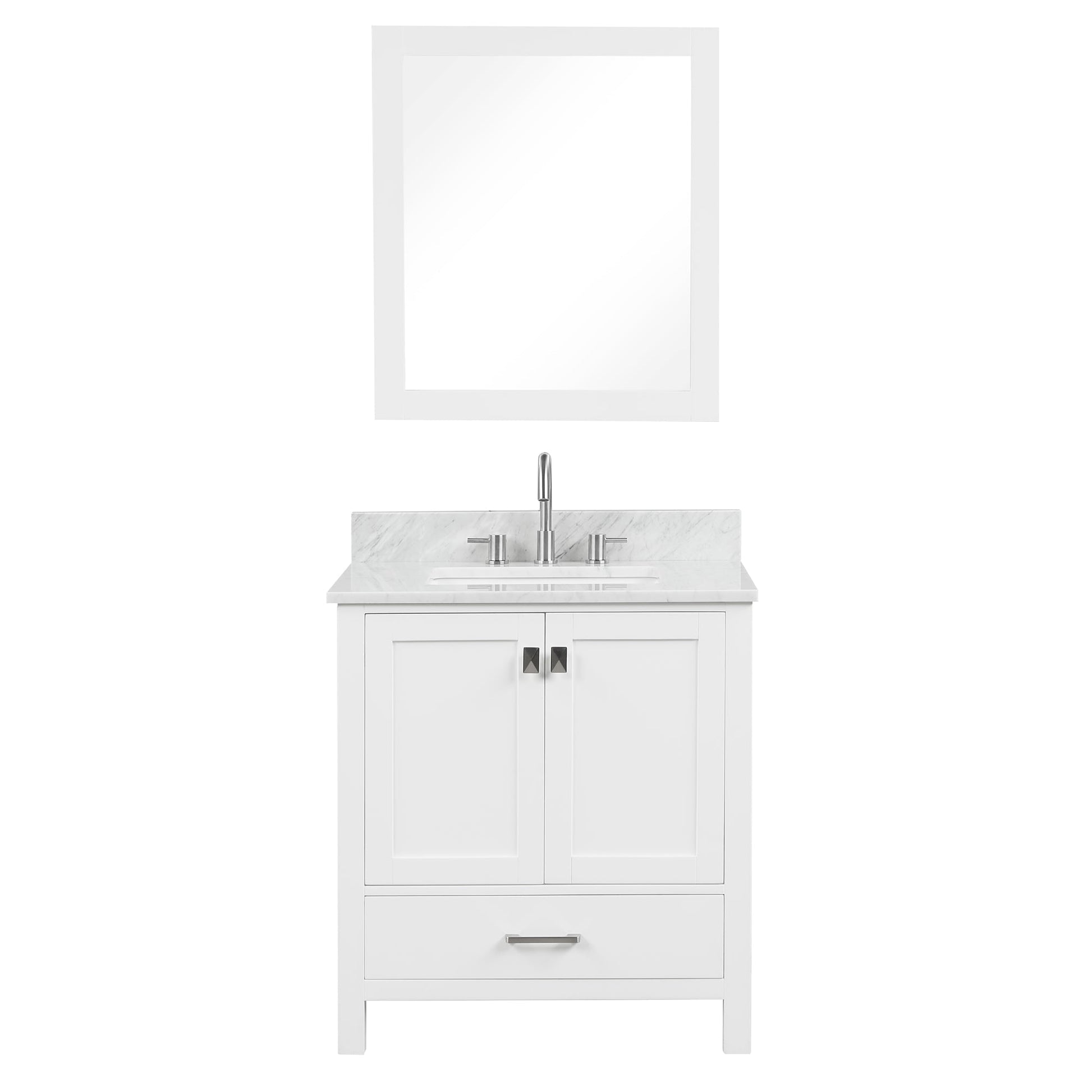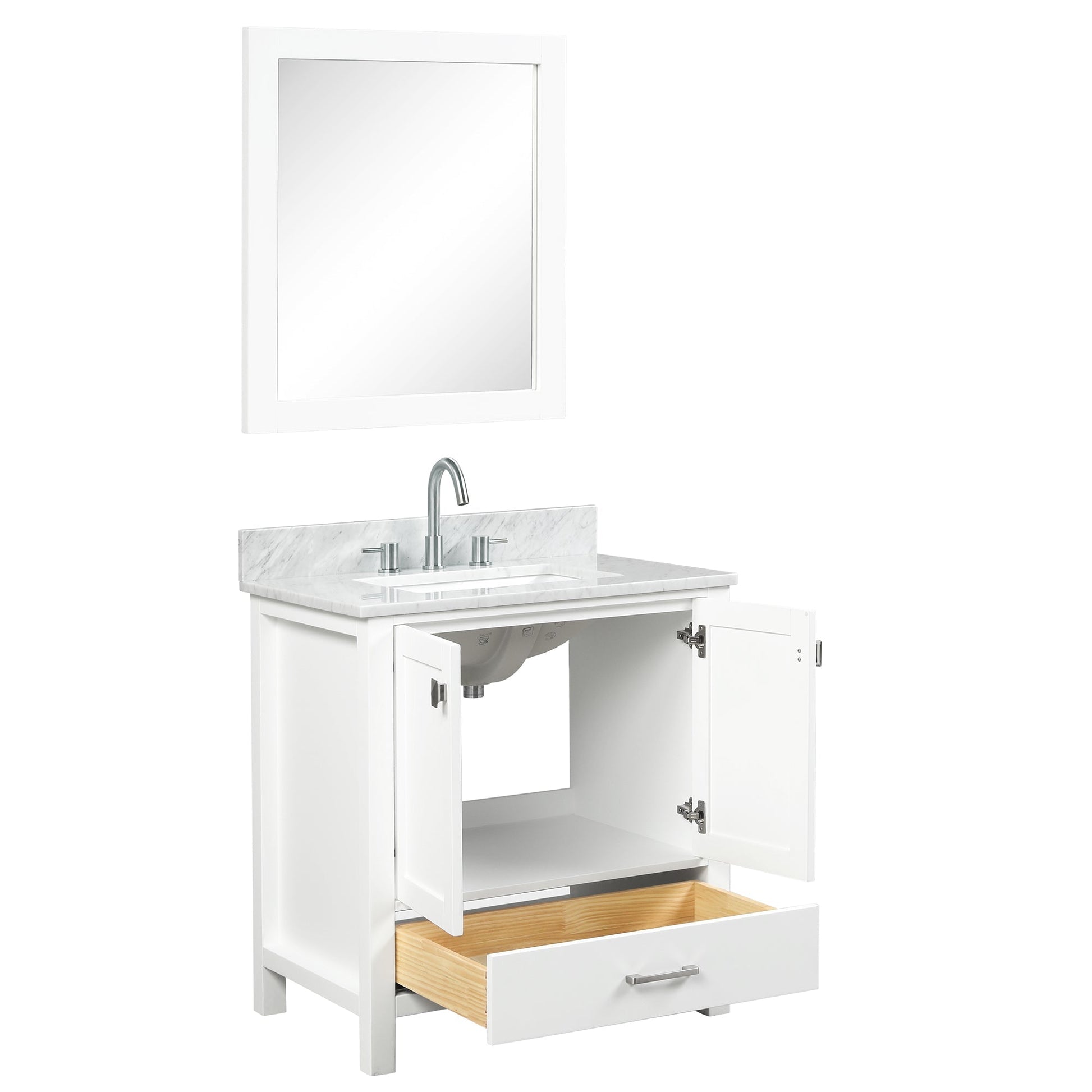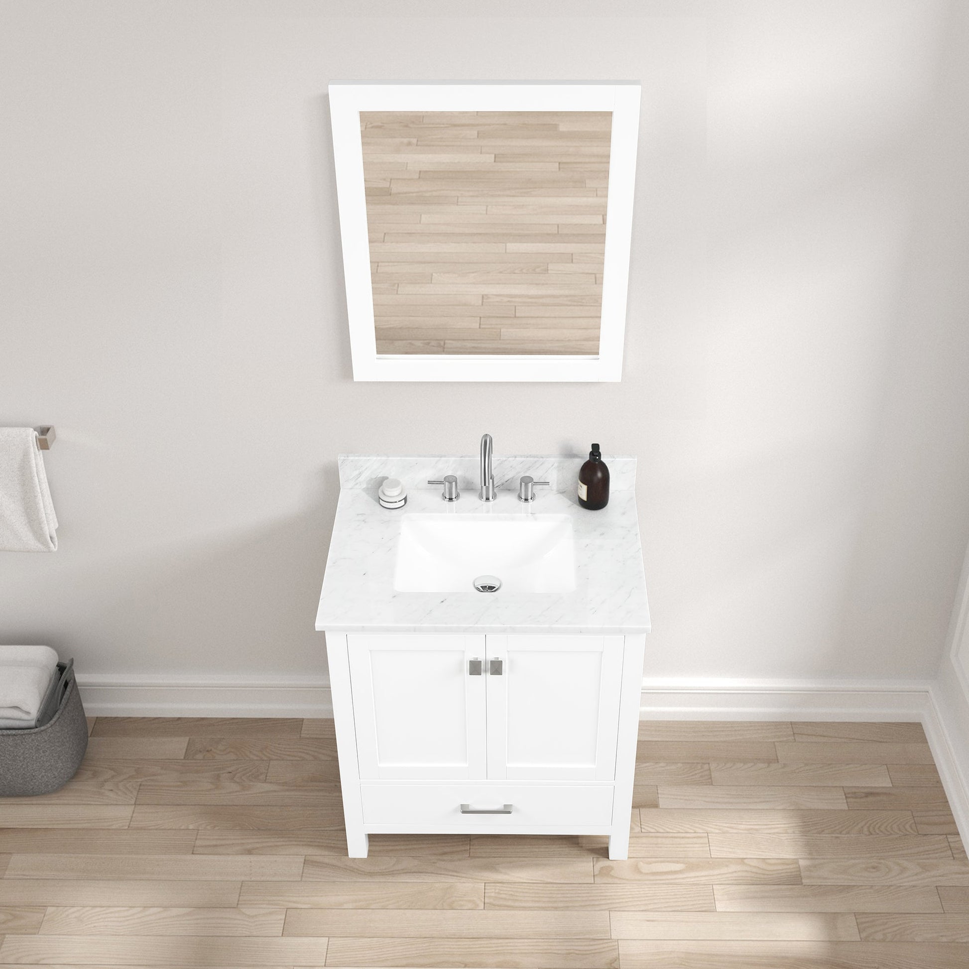 Elegant countertop included — Comes with a 25″ × 22″ Carrara marble top and backsplash for a timeless look.