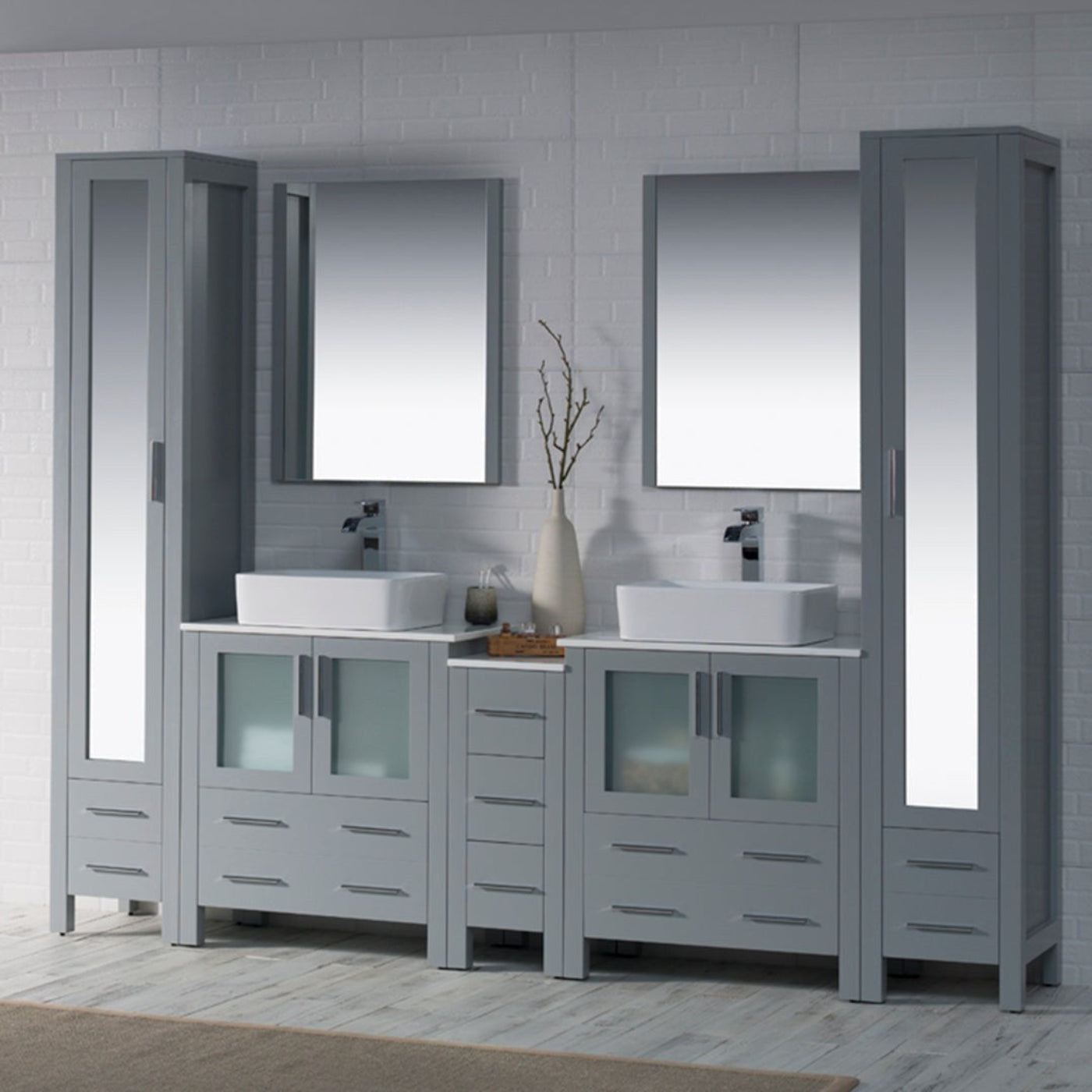 Smart Dimensions: Vanity: ~29.25″ W × 18″ D × 32.25″ H; Side cabinets: 12″ W × 18″ D × 29.75″ H, providing generous storage without dominating space.