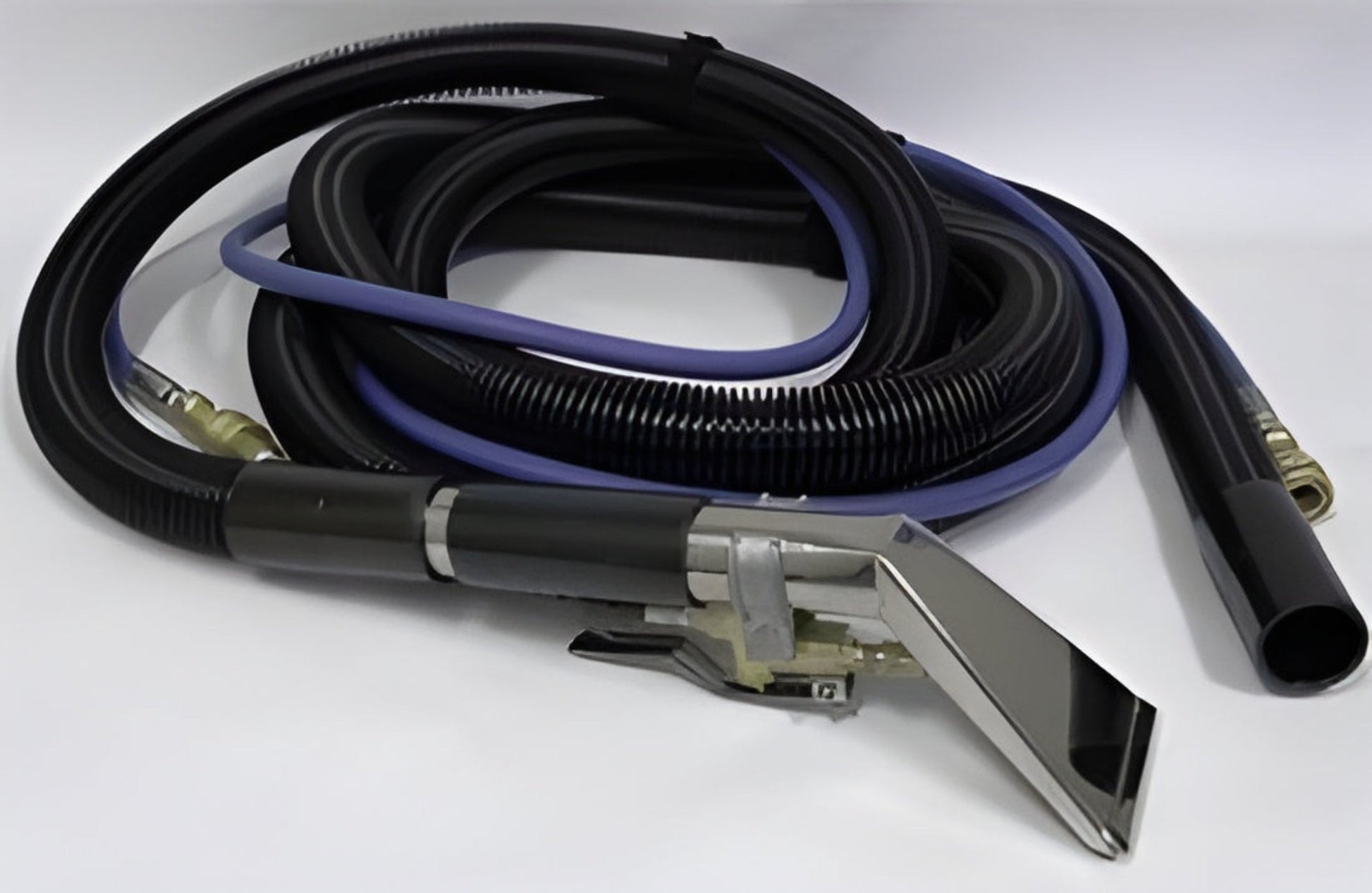 A: It includes a 15' hose and a 4" upholstery tool for precision cleaning.
