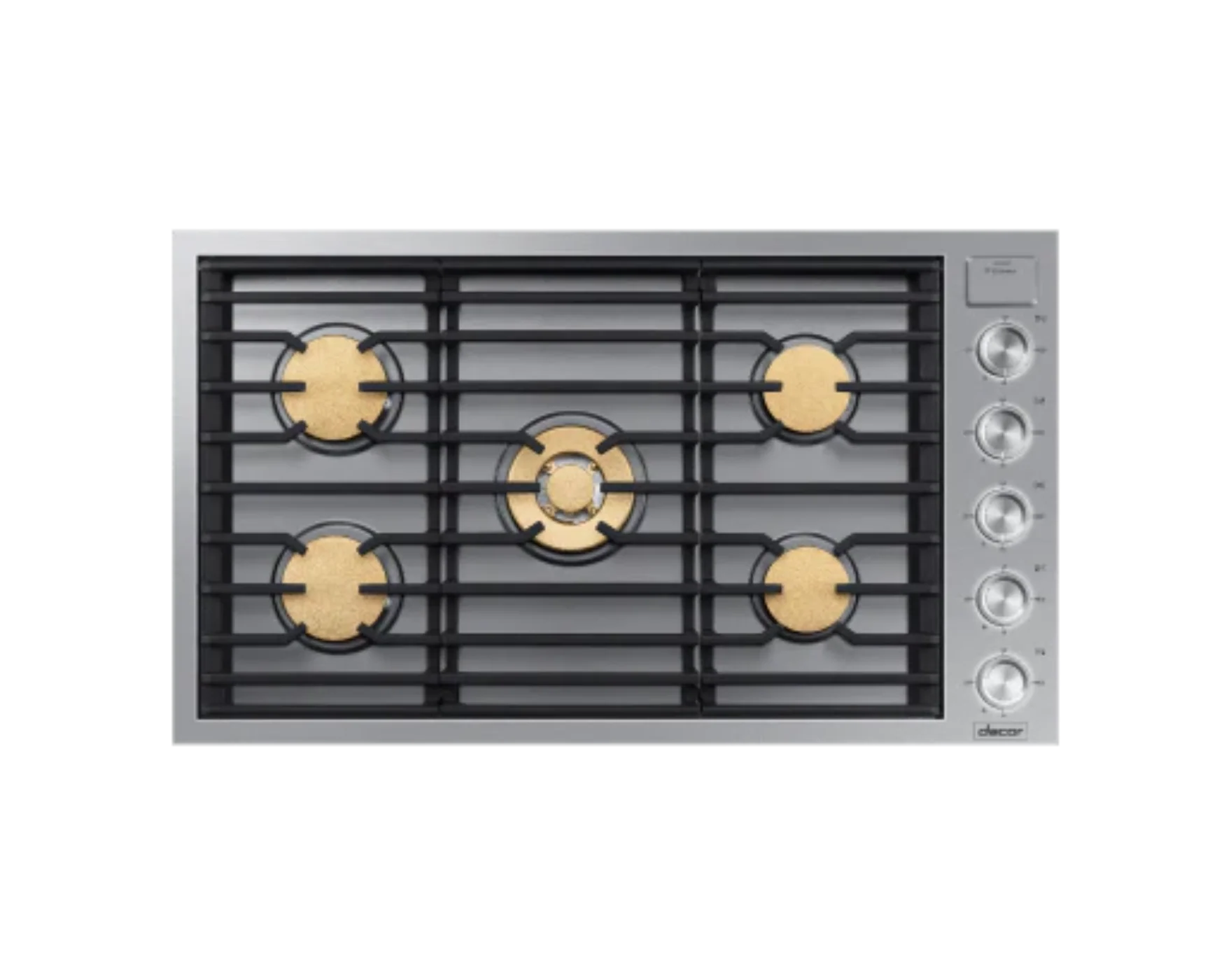 Professional Gas Performance: Five sealed burners, including a Dual-Stacked Sealed Brass Burner up to 18,000 BTU, for high-heat searing and gentle simmering.