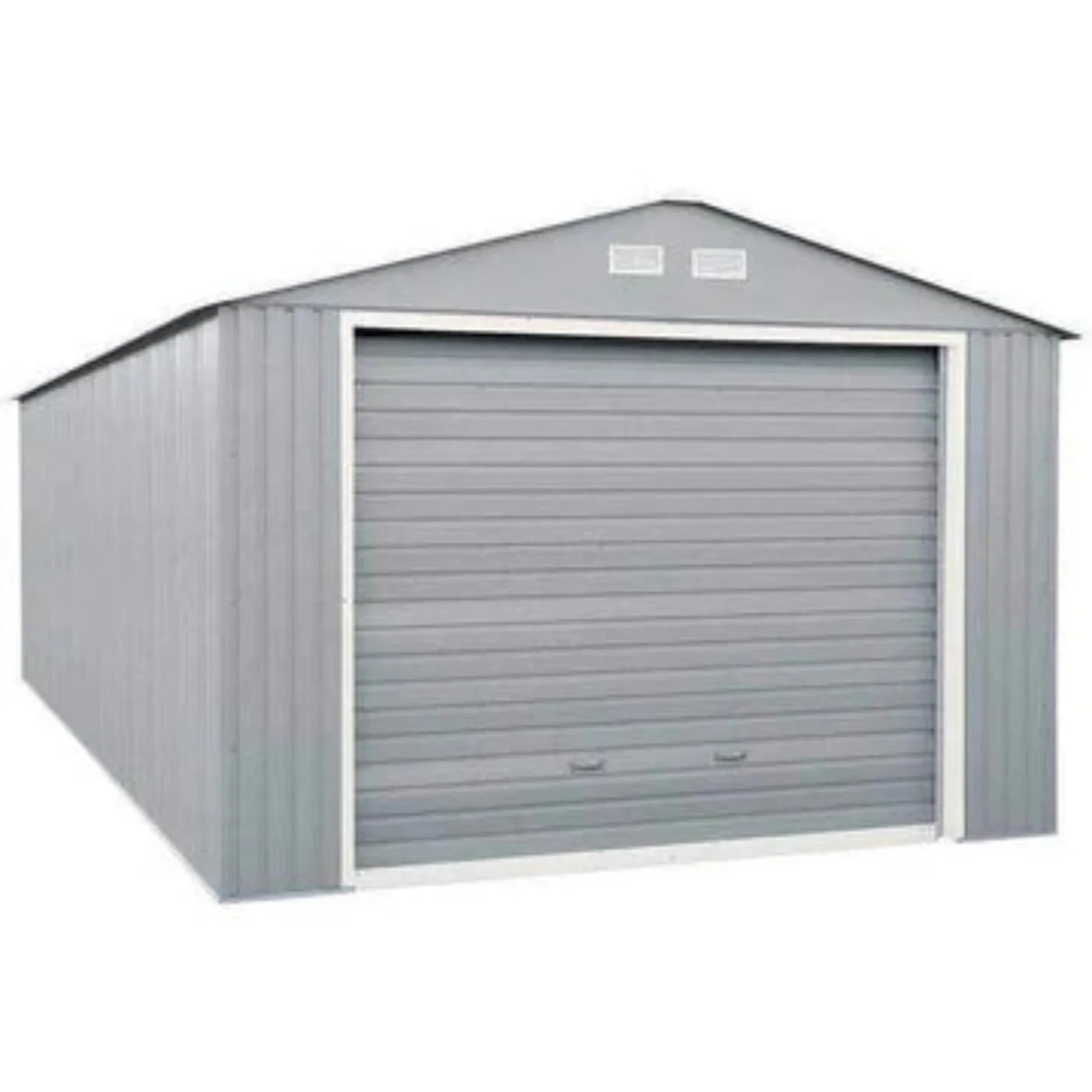 The Duramax 12'x26' Imperial Metal Garage is a spacious and sturdy garage, perfect for housing your SUV or other vehicles. With its 98 1/4 inch wide front roll-up door and a secure side entrance, this garage offers both convenience and safety. Built to withstand tough weather conditions, it features a reinforced roof and strong galvanized steel frame to ensure durability and long-lasting use. Whether you're looking to protect your vehicle or create additional storage space, this metal garage is designed for both practicality and strength.