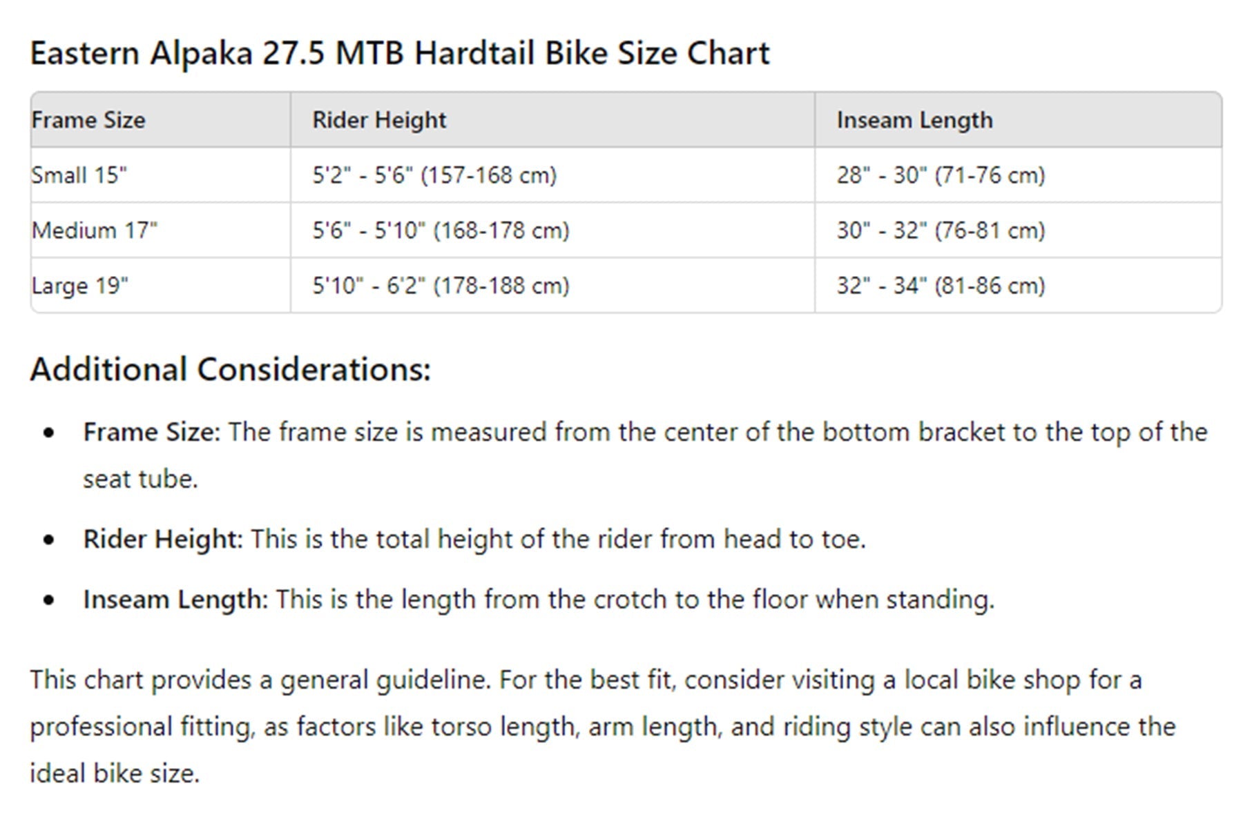 Presenting the new 27.5″ Alpaka hardtail MTB from Eastern Bikes. This mountain bike is always ready for a rip around the neighborhood or single-track. It features hydraulic disc brakes for added control and stopping power. The double-wall rims help keep you rolling smooth. Various colors and sizes available to fit just about any rider’s taste or size.