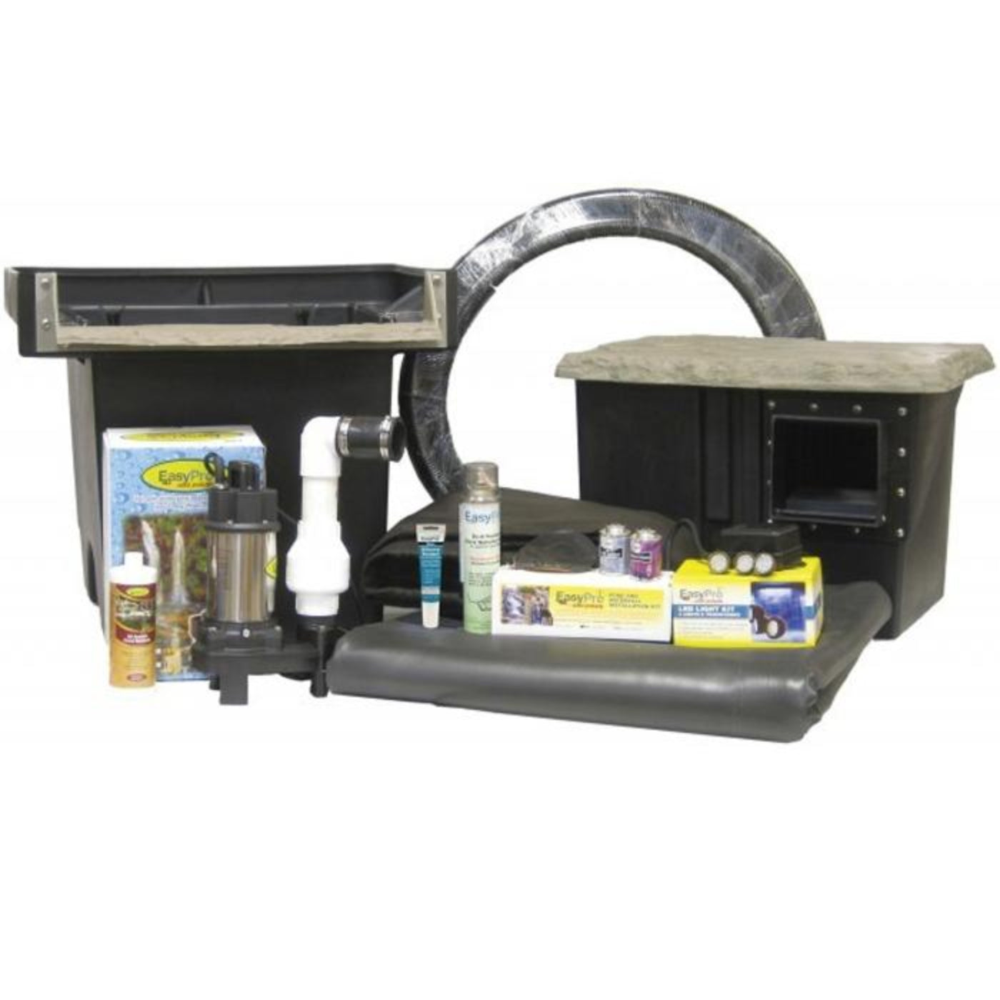 EasyPro medium pond kits make you look like you’re a pro even if it’s your first pond! Building beautiful water features is enjoyable when you use the right products.EasyPro skimmers and filters were designed by pond builders who had installed the other equipment available on the market but wanted something better. The results are these skimmers and filters which we feel are the finest available anywhere.EasyPro pond kits include everything you need to build professional looking water features including the industry’s best skimmers and filters. Pond builders across the nation have discovered buying their ponds in a kit form is much easier than trying to piece together each job.