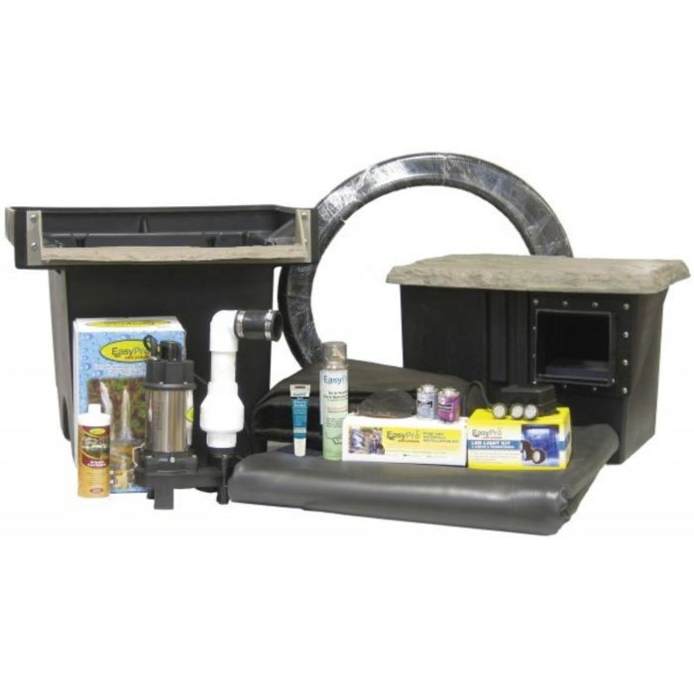 EasyPro pond kits include everything you need to build professional looking water features including the industry’s best skimmers and filters. Pond builders across the nation have discovered buying their ponds in a kit form is much easier than trying to piece together each job.When you buy a complete kit you know everything you need will be on site and that all items will work together to give you a great looking pond.All medium pond kits include our medium AquaFalls filter and PS1FB skimmer for increased filtering capacity over the small pond kits.