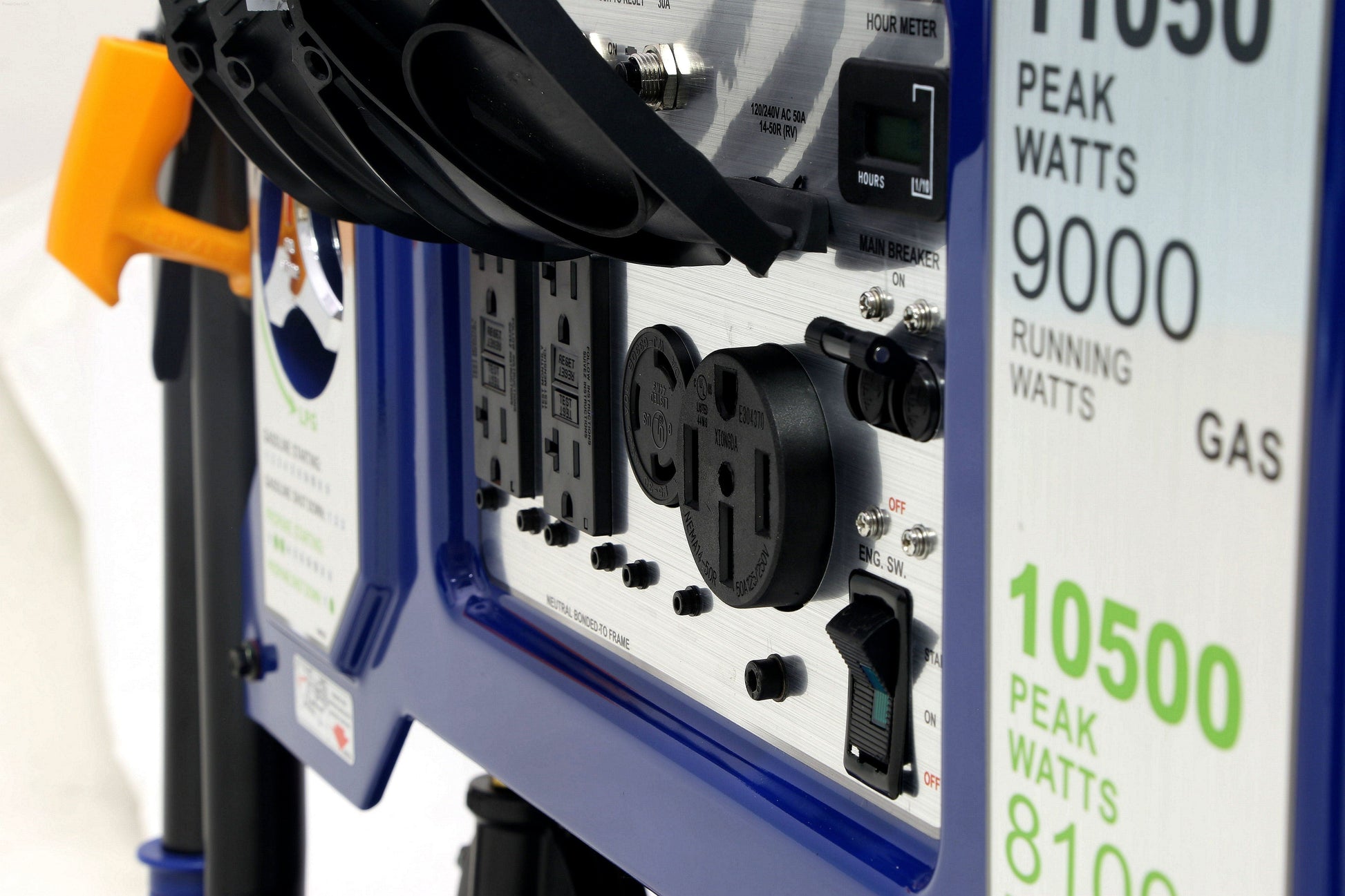 A: This dual-fuel generator provides 11,050 watts of power, capable of running on both gasoline and propane. It features Switch & Go technology for seamless fuel switching, making it ideal for home backup, outdoor events, and job sites.