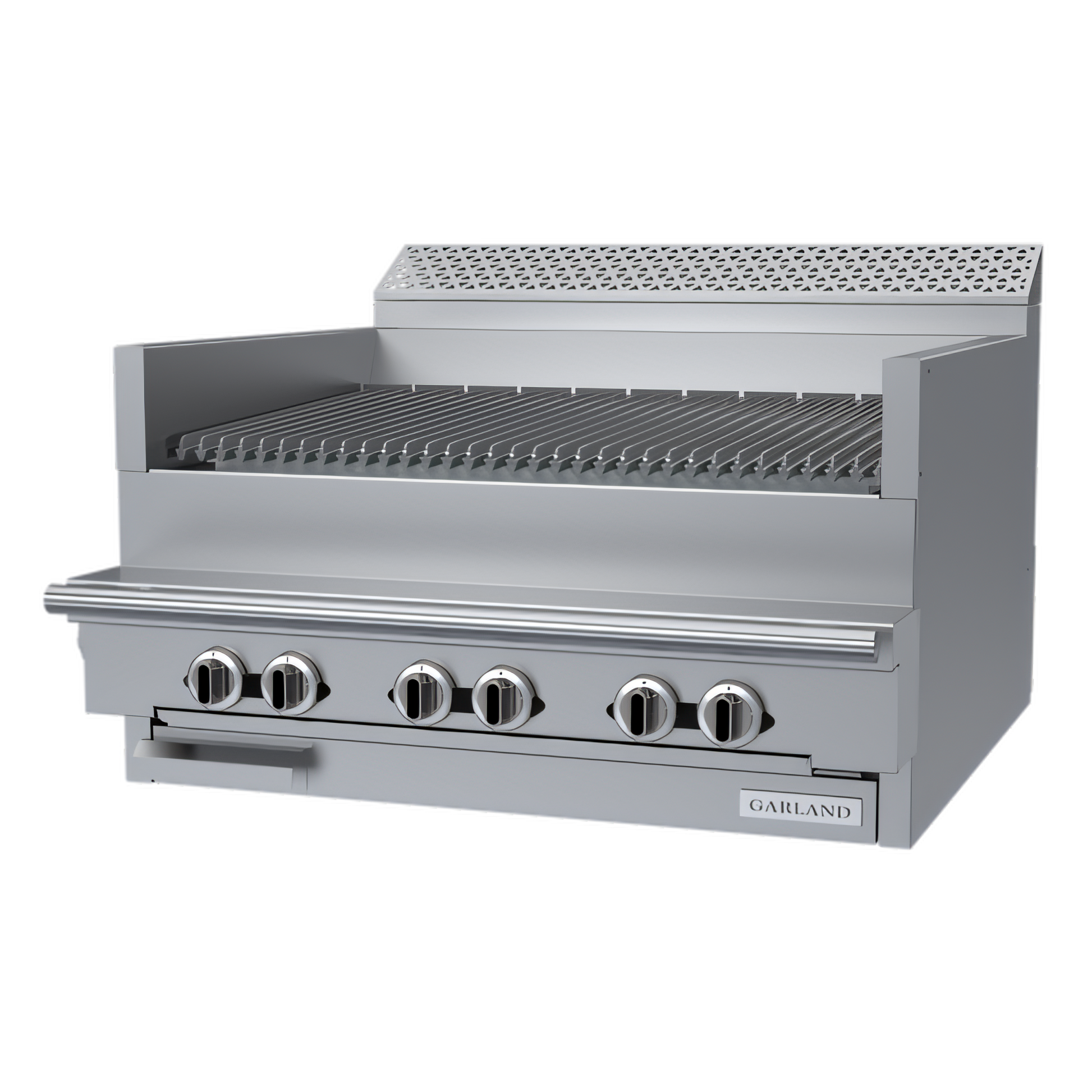 Built for operators who need steak-house heat in a space-saving footprint, the Garland C36-NRM drops straight onto a stand, chef’s counter or refrigerated base and delivers a blazing 108,000 BTU of even, controllable cooking power. Six independently-valved burners, heavy cast-iron radiants and a fixed three-bar grate assembly combine to turn out beautifully branded proteins night after night while the all-stainless exterior shrugs off the grind of a high-volume kitchen.