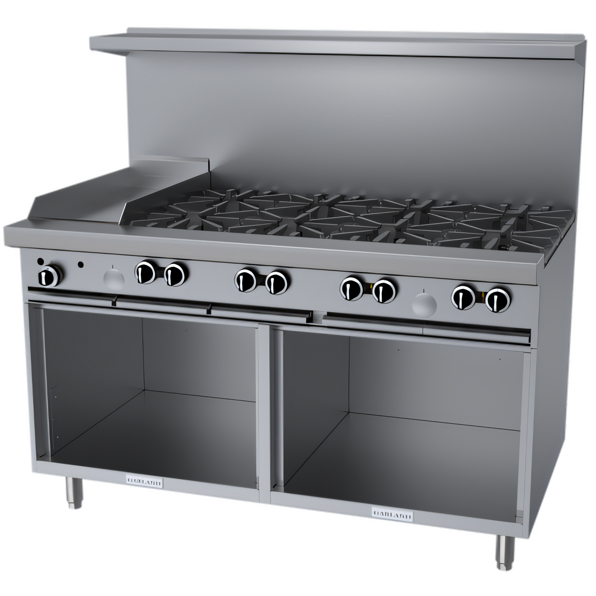 | Bases | 2 stainless storage compartments (no ovens) |