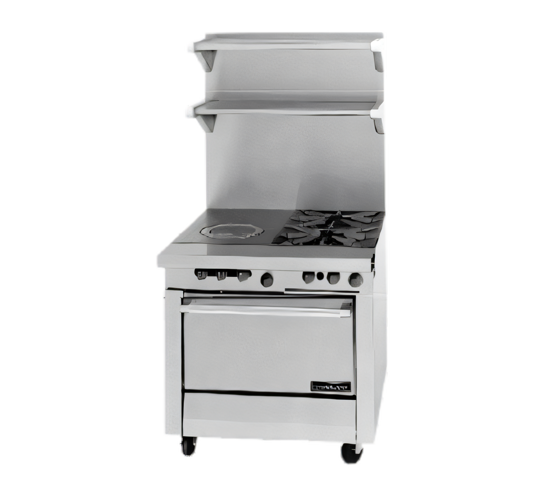(2) 35,000 BTU Starfire Open Burners • 17" Front-Fired Hot Top • Standard Oven