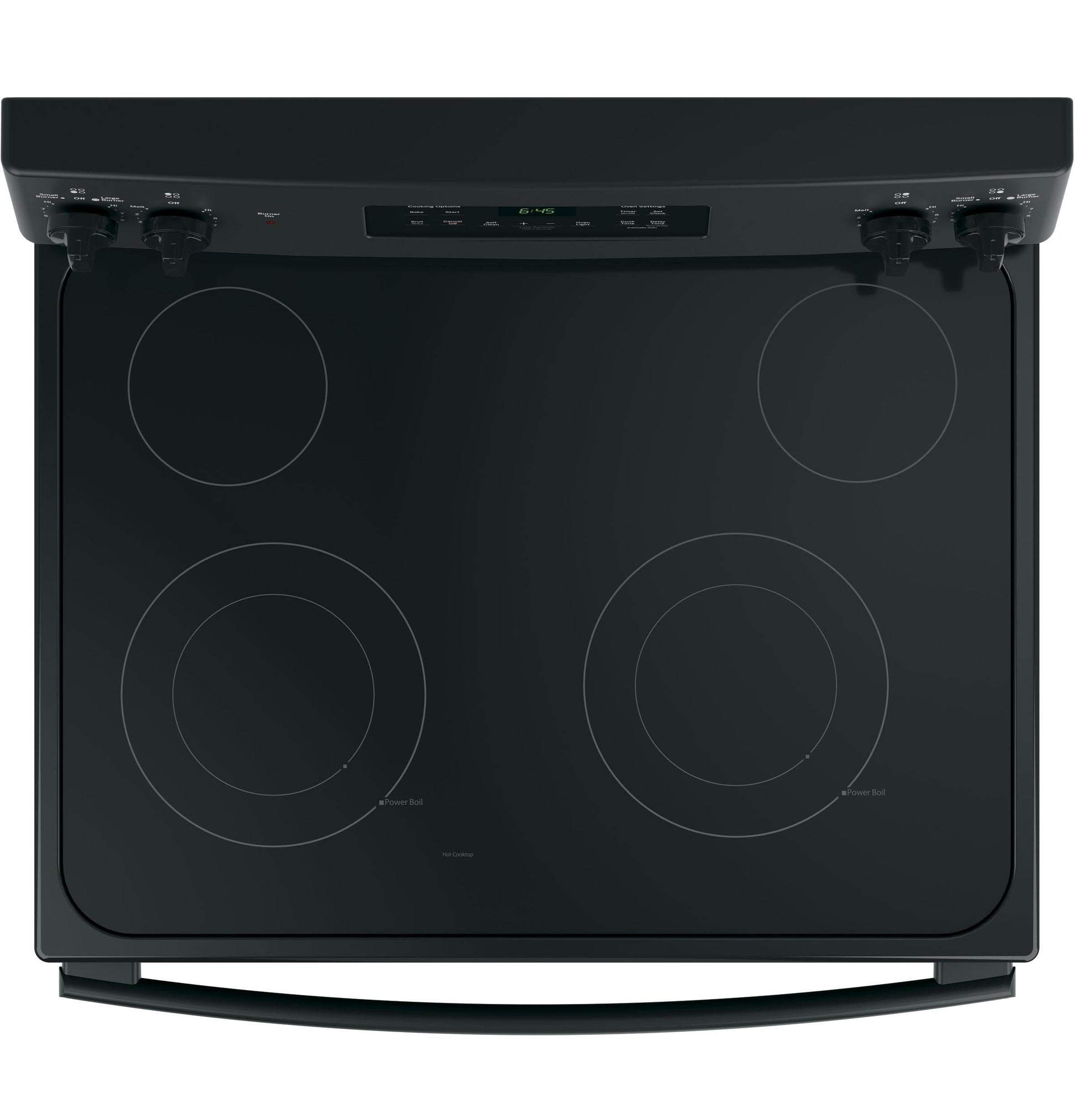 (BR)(B)Two 9"/6" Power Boil elements(/B)(P)Two powerful elements boil water 25% faster than standard GE elements and adjust to fit cookware(/P)(BR)(B)Self-clean oven(/B)(P)This self-cleaning oven cleans the oven cavity without the need for scrubbing or chemical cleaners(/P)(BR)(B)Dual-element Bake(/B)(P)Upper and lower elements produce even heat and great results(/P)(BR)(B)Ceramic glass cooktop(/B)(P)Smooth cooktop easily wipes clean(/P)(BR)(B)Removable full-width storage drawer(/B)(P)Store cookware or kitchen accessories(/P)(BR)(B)5.3 cu. ft. oven capacity(/B)(P)Enough room to cook an entire meal at once(/P)