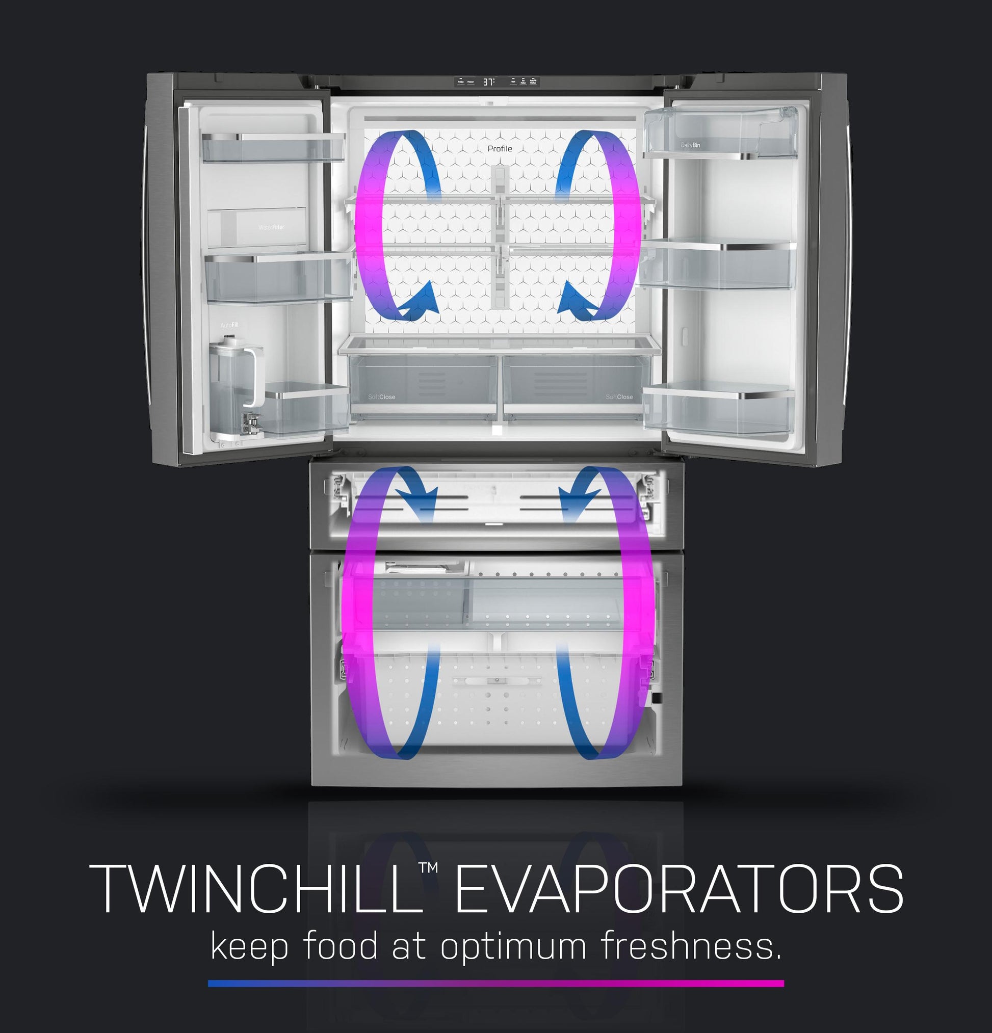 This advanced technology refrigerator features TwinChill™ Dual Evaporators to create separate climate zones in the fresh food and freezer sections, keeping foods at their optimum freshness.