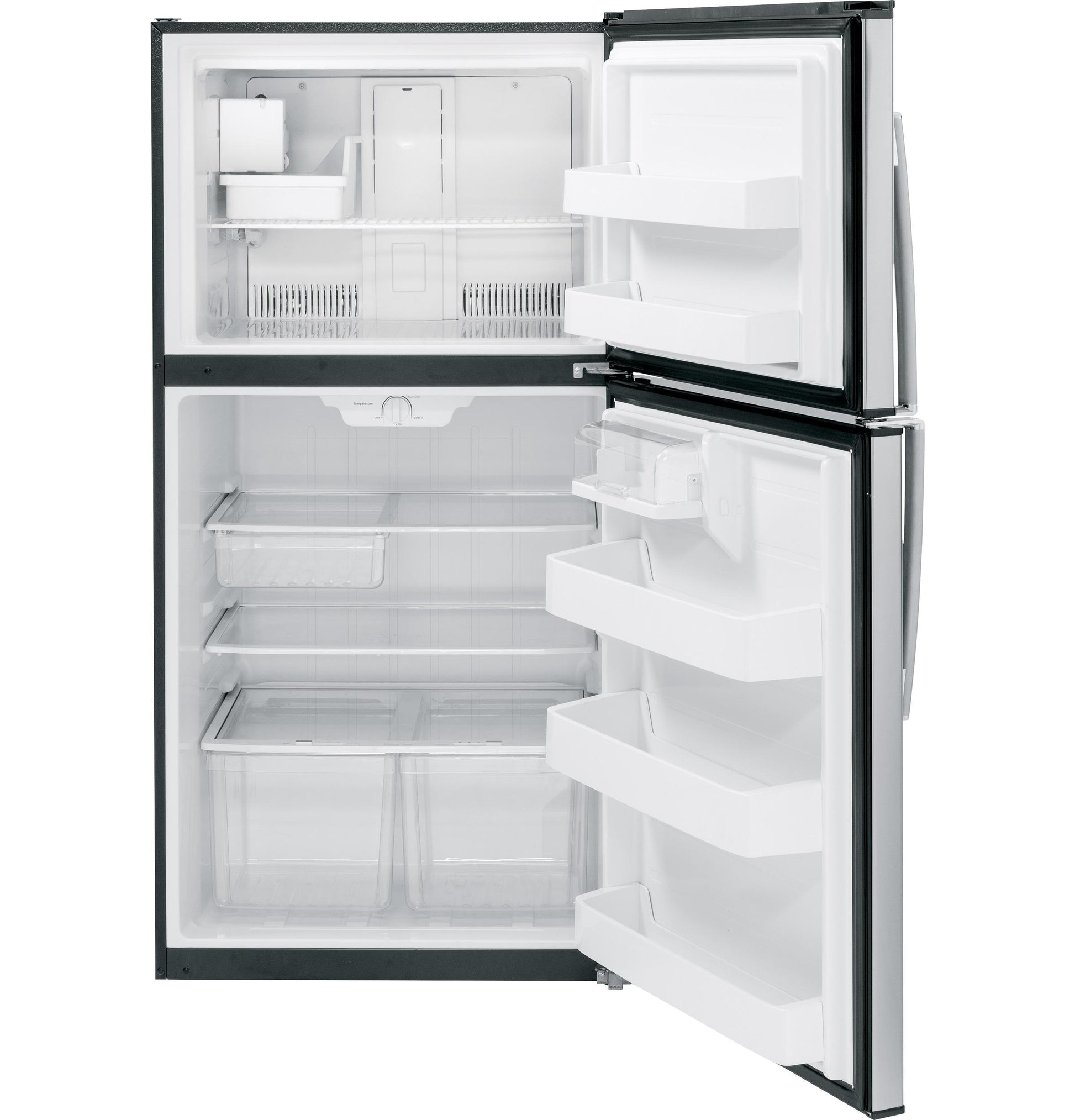 Q: What are the key features of the GE GIE21GSHSS Top-Freezer Refrigerator?