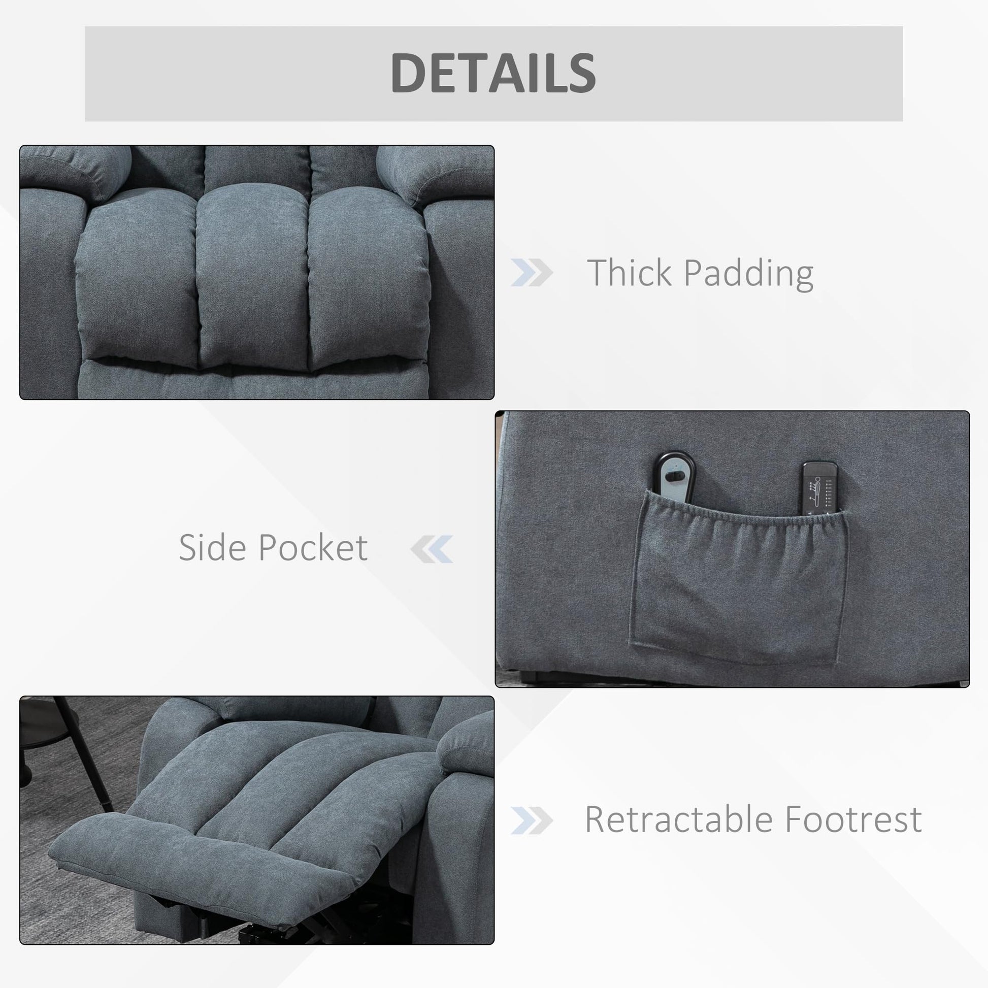 - Lifting Assistance: Guiding users into an almost standing position in security makes it an excellent riser recliner chair for the elderly and those recovering from injuries. It is easy to use with a remote, and convenient side pockets help keep the controller and other essential items nearby.