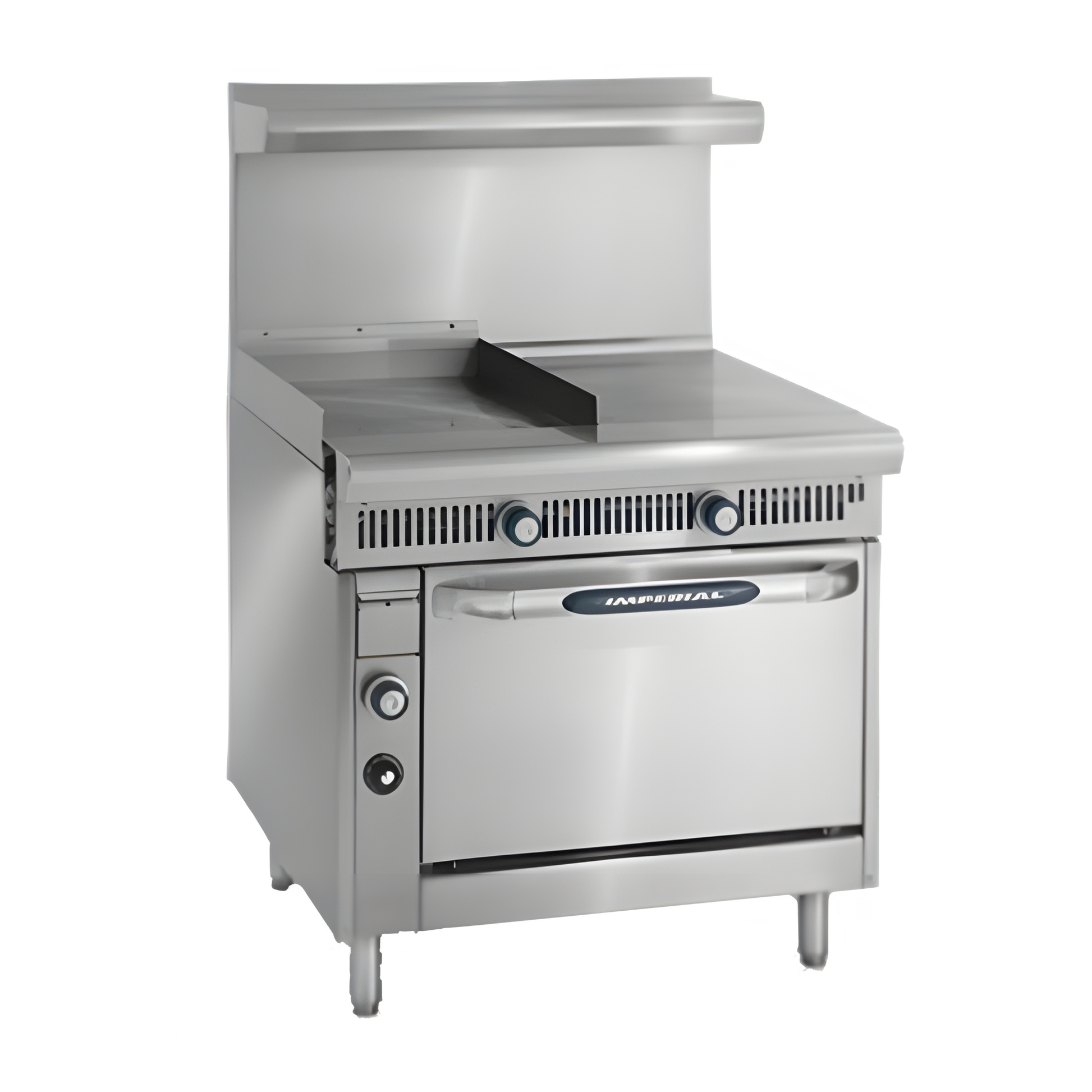 Versatile Cooking Options: The 36"W range includes (1) 18"W griddle with thermostatic control for precise cooking, and (1) 18"W hot top for high-heat cooking versatility.