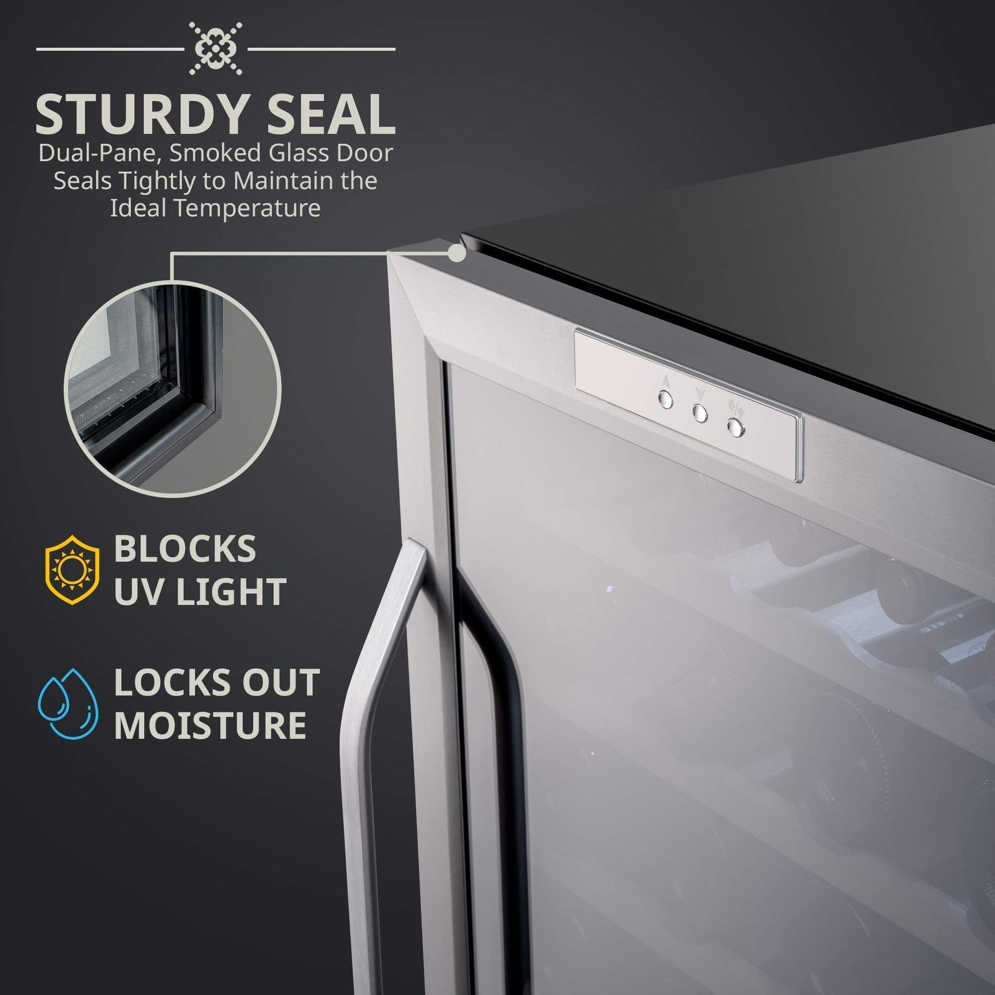 Keeping your wine collection has never looked better with the Ivation Freestanding Compressor Wine Cooler Refrigerator, place this cooling unit in any room where you like to have social parties or nice, quiet evenings. Enjoy having a wine refrigerator freestanding close by where you can store your favorite elegant drinks. The Ivation Freestanding Small Wine Fridge fits in any room with its beautiful, exterior design, also you can arrange your wine chiller how you like by using the removable chrome shelves. Adjust the cooling process of the mini wine fridge if needed with the easy-to-operate temperature controls and watch your beverages chill right before your eyes with the interior LED lighting and the transparent glass door of the wine cellar. The advanced compressor cooling system on the small wine cooler delivers the optimal environment for those special vintages, preserving their unique flavor and delicacy. Sit back and relax knowing that you have a convenient lockable wine cooler refrigerator to help you unwind.