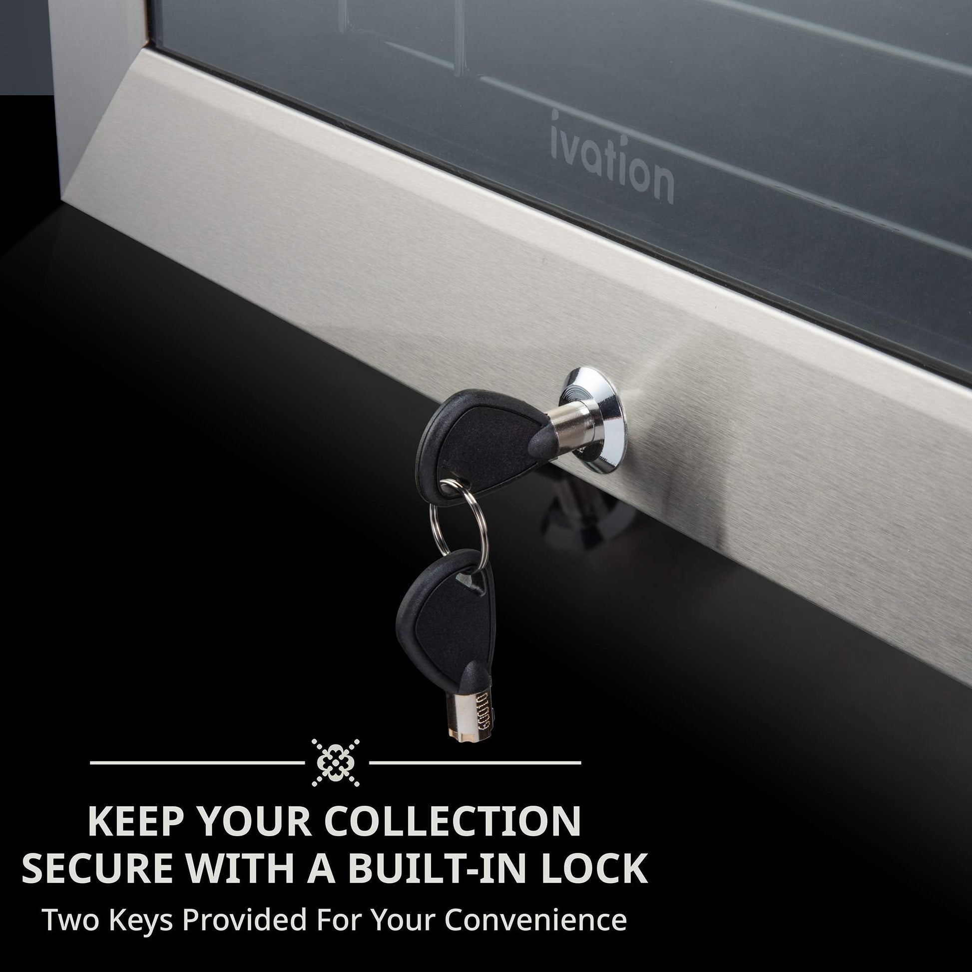 Q: What is the Ivation 51-Bottle Compressor Wine Refrigerator, Freestanding Wine Cooler with Lock?