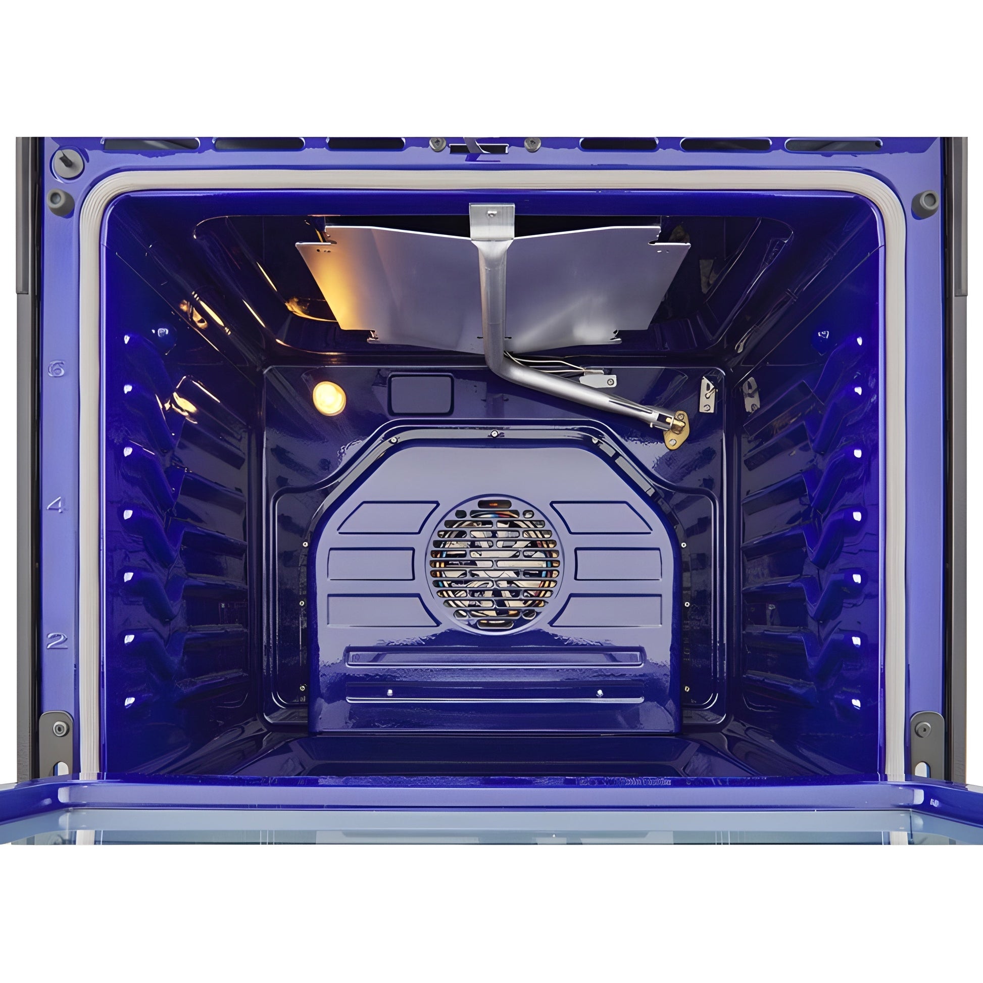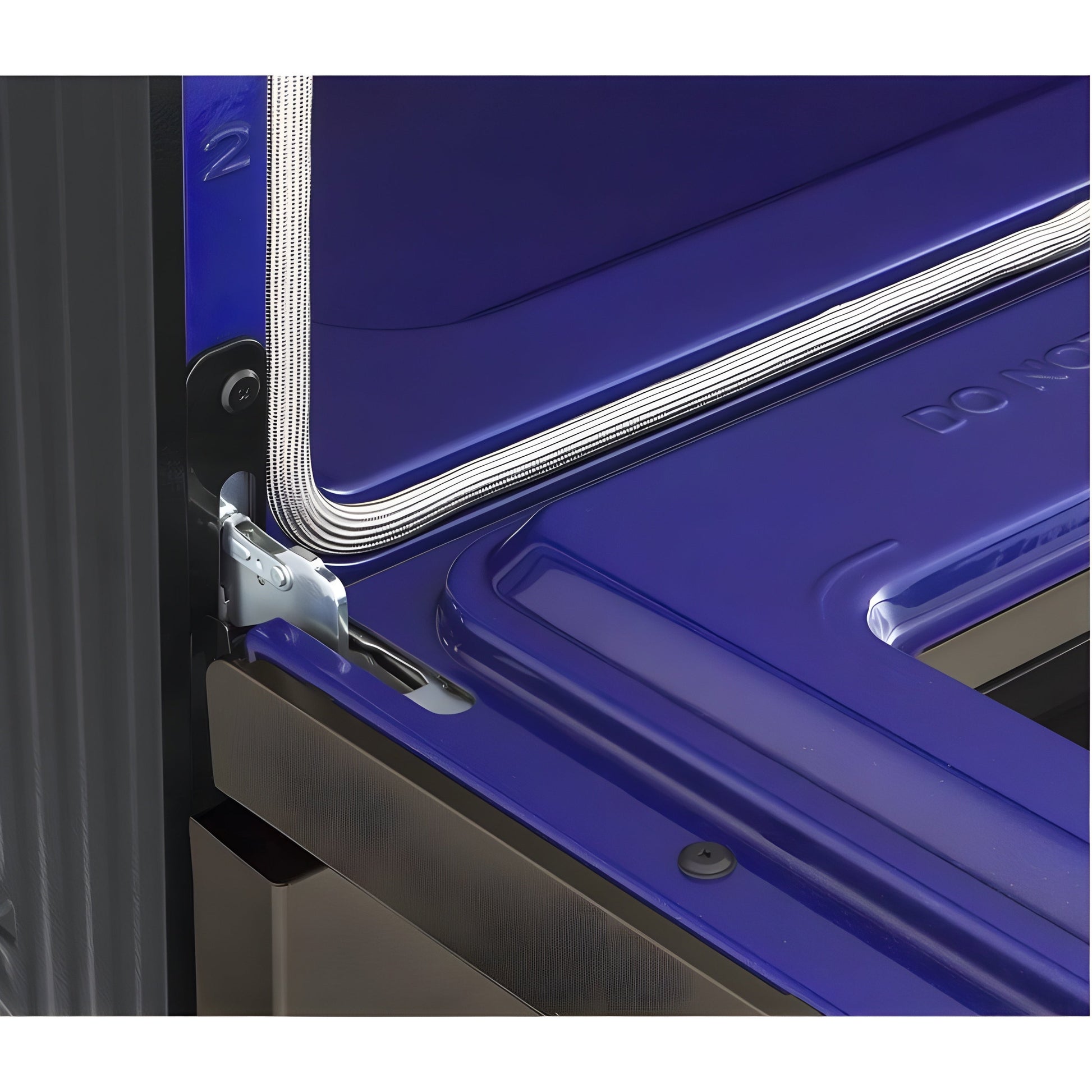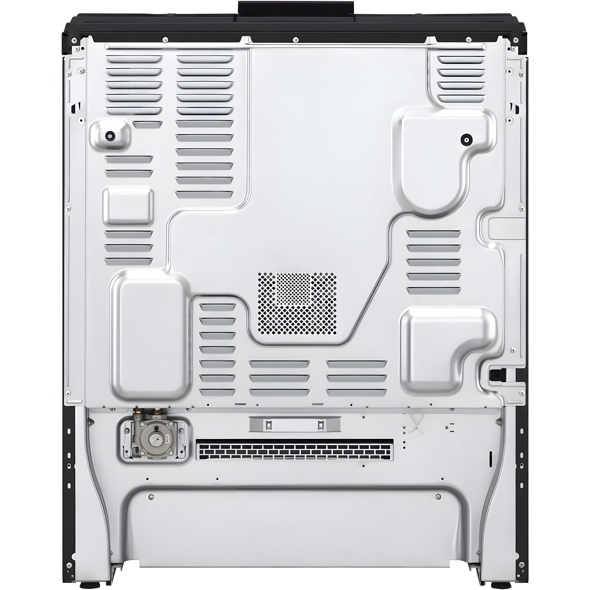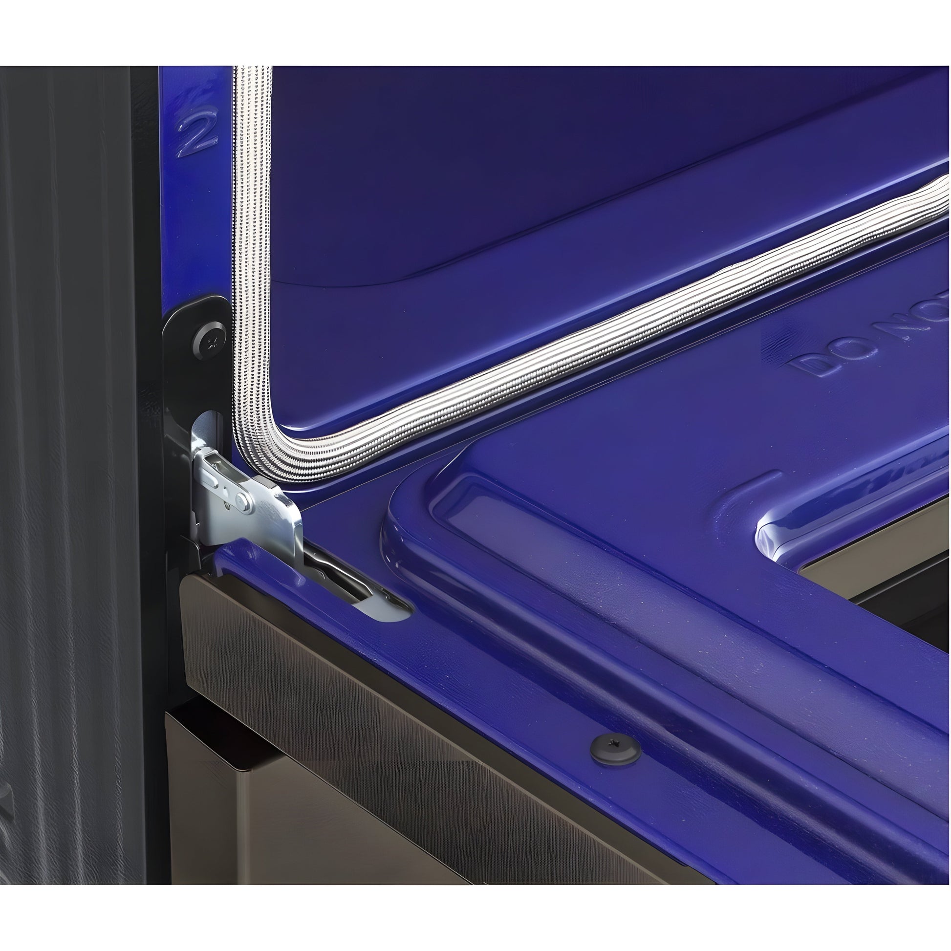 A: This premium gas range features ProBake Convection for even baking, InstaView for a quick peek inside, and built-in Air Fry for crispy results—all in a sleek black stainless steel finish.