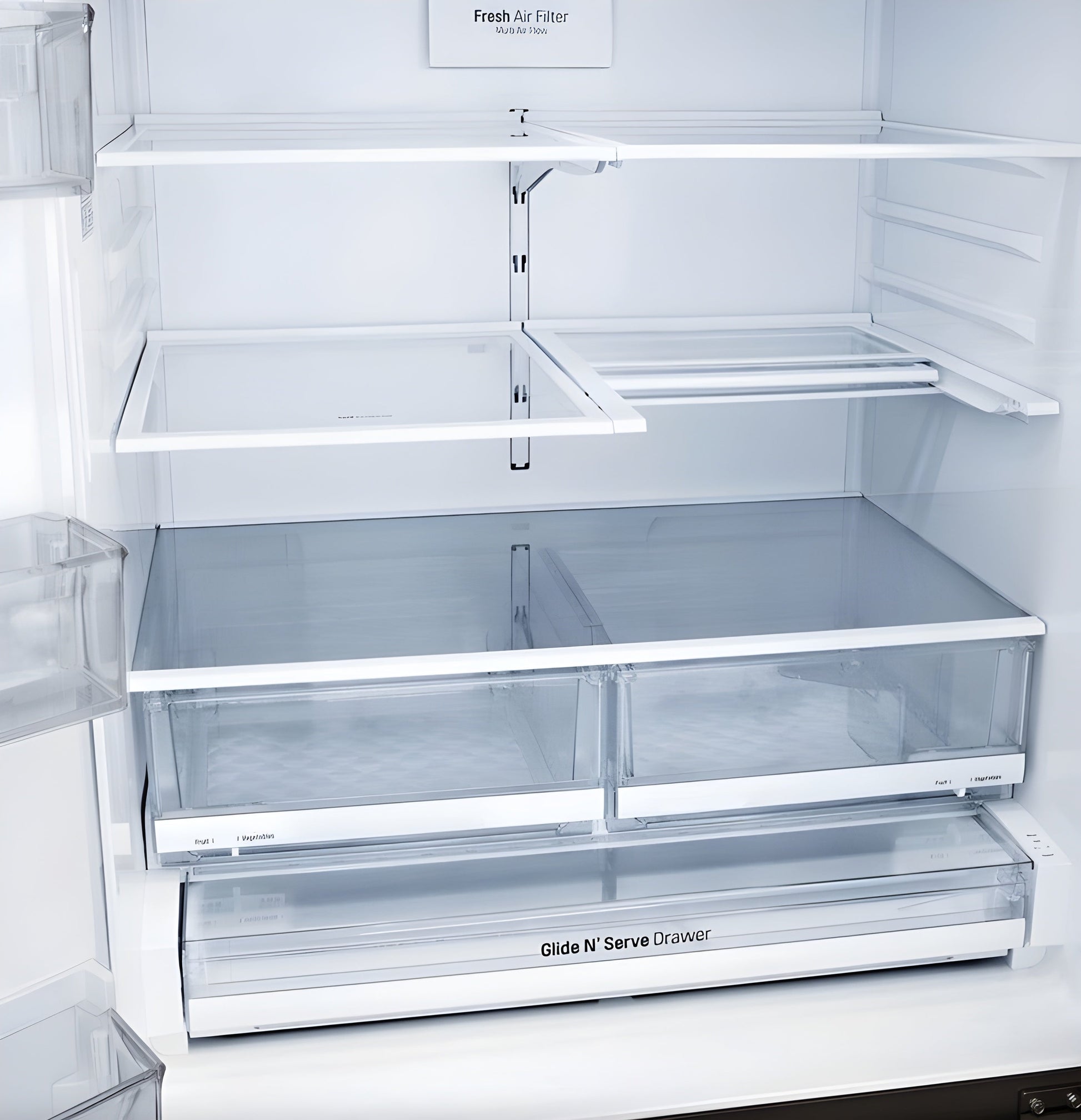 Stock up and store everything you need. With a cavernous 28 cubic feet of space, this LG French Door refrigerator gives you ample space for all of your family’s favorite foods and keeps them conveniently organized and within reach.