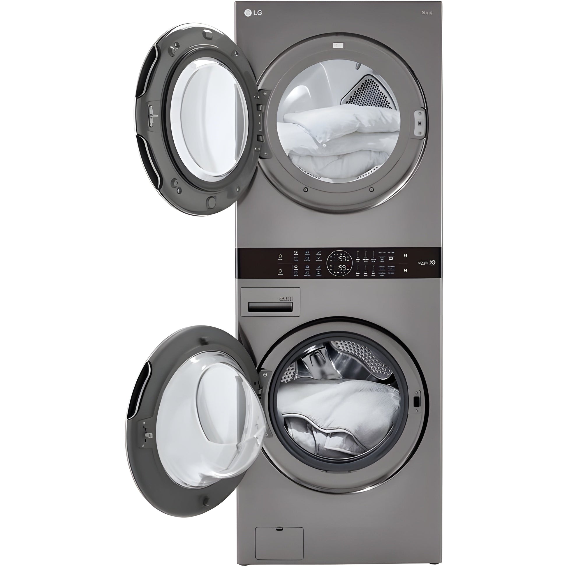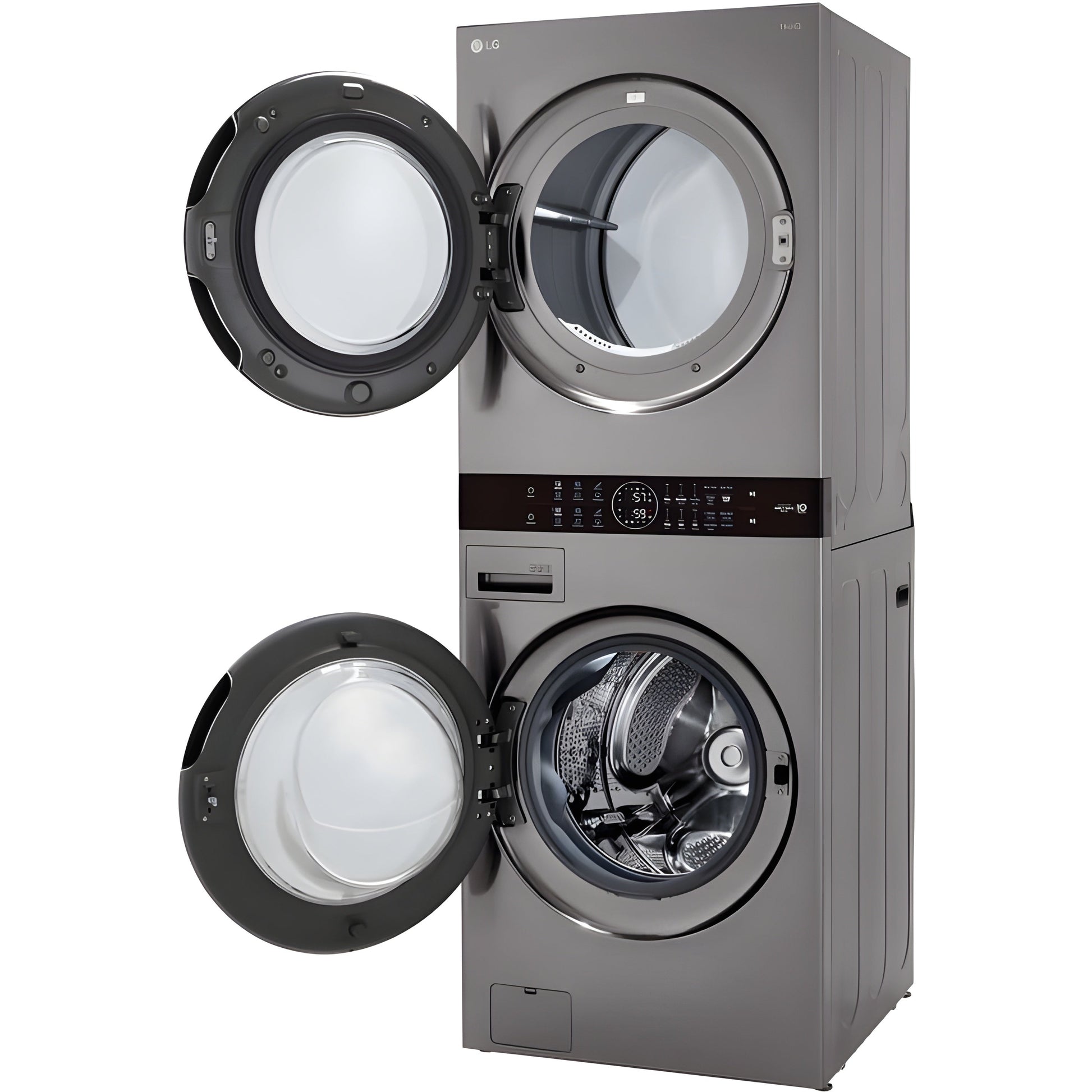 A: The LG WashTower combines a 4.5-cu. ft. washer and a 7.4-cu. ft. electric dryer in a sleek graphite finish. Itβs designed for efficiency, offering space-saving vertical design and convenient center control for seamless operation.