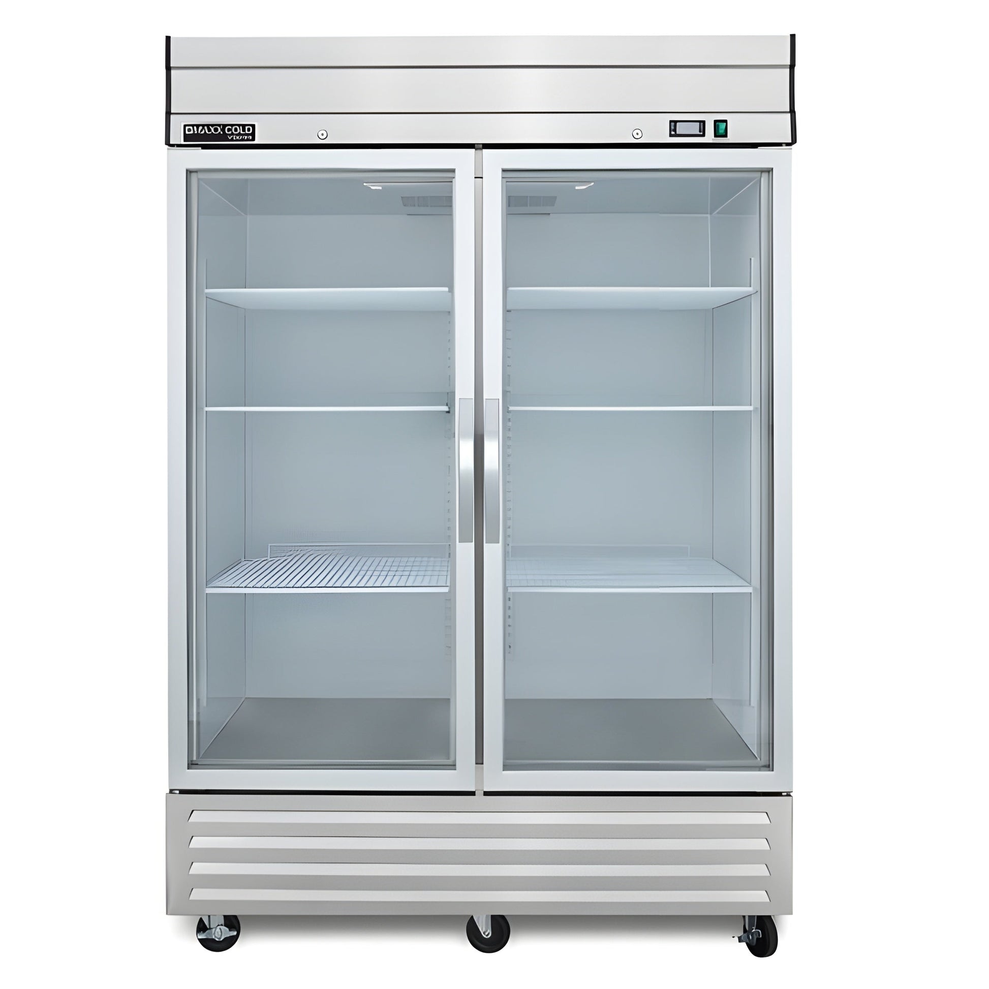 Ideal for showcasing your goods in restaurants, cafes, bakeries, catering businesses and more, the Maxx Cold V-Series 2 Glass Door Reach-In Refrigerator is a smart investment. Offering ample storage space for perishable goods, ingredients, prepared foods and beverages, this commercial reach-in refrigerator measures 54"W and has a storage capacity of 42 cubic feet. Built to withstand the demands of a commercial kitchen environment, it is constructed of a durable, easy-to-clean stainless steel exterior and painted aluminum interior. This reach-in refrigerator has two self-closing, locking, dual-pane glass doors with easy-to-grip handles, and the unit's open door alert beeps when the door has been open for three minutes. The transparent doors create an attractive display that enhances product visibility, promotes impulse purchases and makes it easier to locate items. Eight adjustable heavy-duty wire shelves let you efficiently organize and store food and beverage items. The unit has an easily accessible bottom mount for cleaning and is equipped with 4-inch swivel casters for easy mobility in your commercial kitchen. The digital control system lets you easily adjust the temperature with the range of 34°F to 40°F (1°C to 4°C), and the LED temperature display is easy to read. This double-door reach-in refrigerator features automatic interior lighting, an automatic defrost system and urethane foam insulated walls. The unit is equipped with an integrated condensate evaporator; therefore, no drain line connection is needed. Investing in the Maxx Cold V-Series 2 Glass Door Reach-In Refrigerator is a practical and essential decision for businesses in the foodservice industry. Covered by the Maxx Cold Six-Month Parts and Labor Limited Warranty.