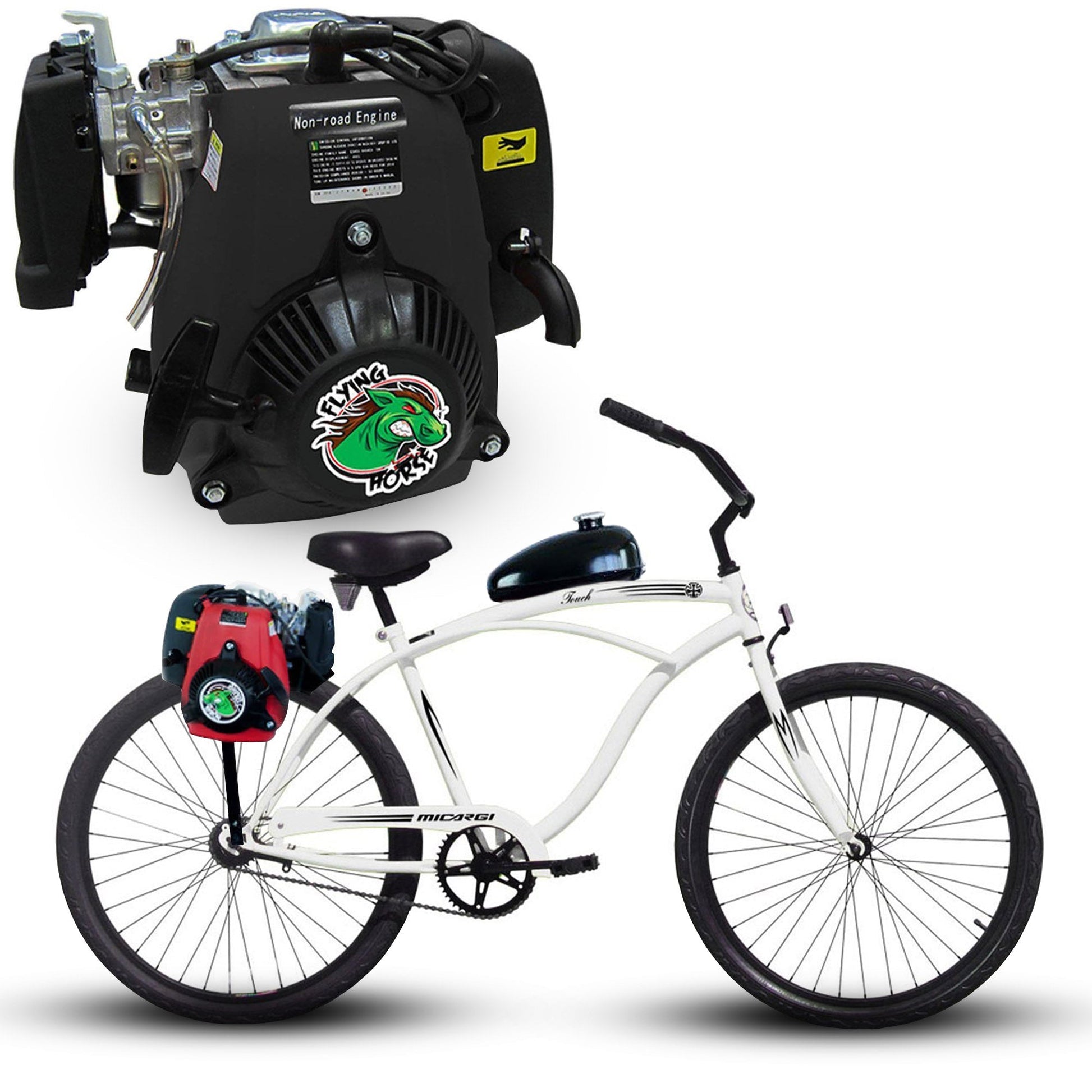 The Tracer 26 Inch Men's Ace Beach Cruiser Motorized Bike + 4 Stroke Friction Drive is ideally suited to riders seeking a complete motorized bicycle kit. Manufacturing popular bicycles since 2007, Tracer has a solid industry reputation for producing bikes that are good looking, easy to ride and that are durable enough to last the distance. The 4-stroke Men’s Ace Beach Cruiser is no exception, offering a strong but lightweight frame, a stylish design and all the parts necessary in order to have this motorized bike fully operational.