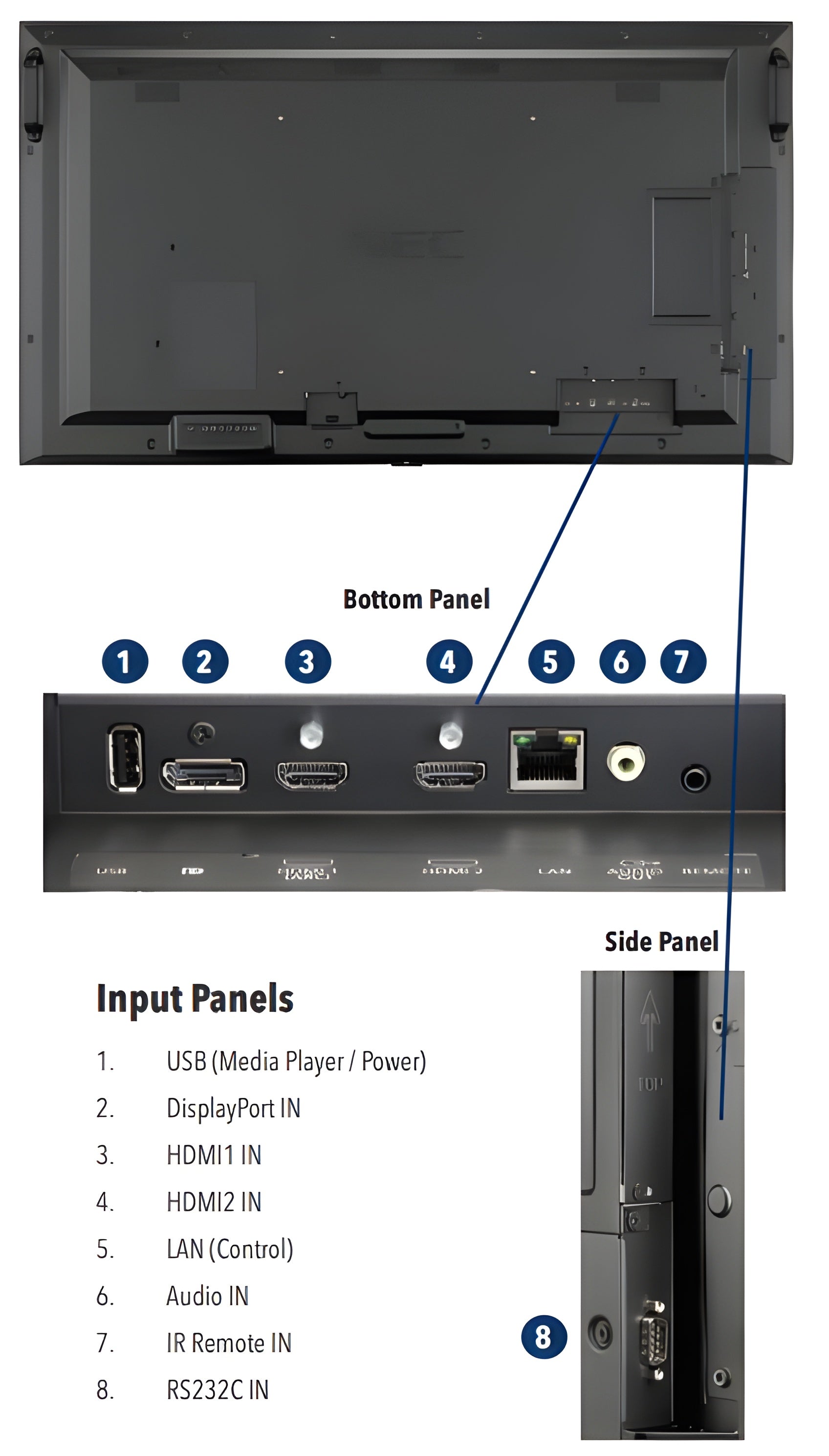 The new series contains a full metal mechanical chassis, allowing for a more robust design necessary for commercial applications while maintaining the attractive aesthetics that allow the focus of onlookers to be on what matters β the message. Simple and targeted connectivity options allow customers to have the up-to-date options that they need while not having to overpay for excess and unused interfaces. The NEC ME651 series boasts 400 cd/mΒ² brightness which is ideal for a majority of digital signage applications in corporate, education, house of worship, retail, and grocery store environments when the focus should be on the message, not the budget.