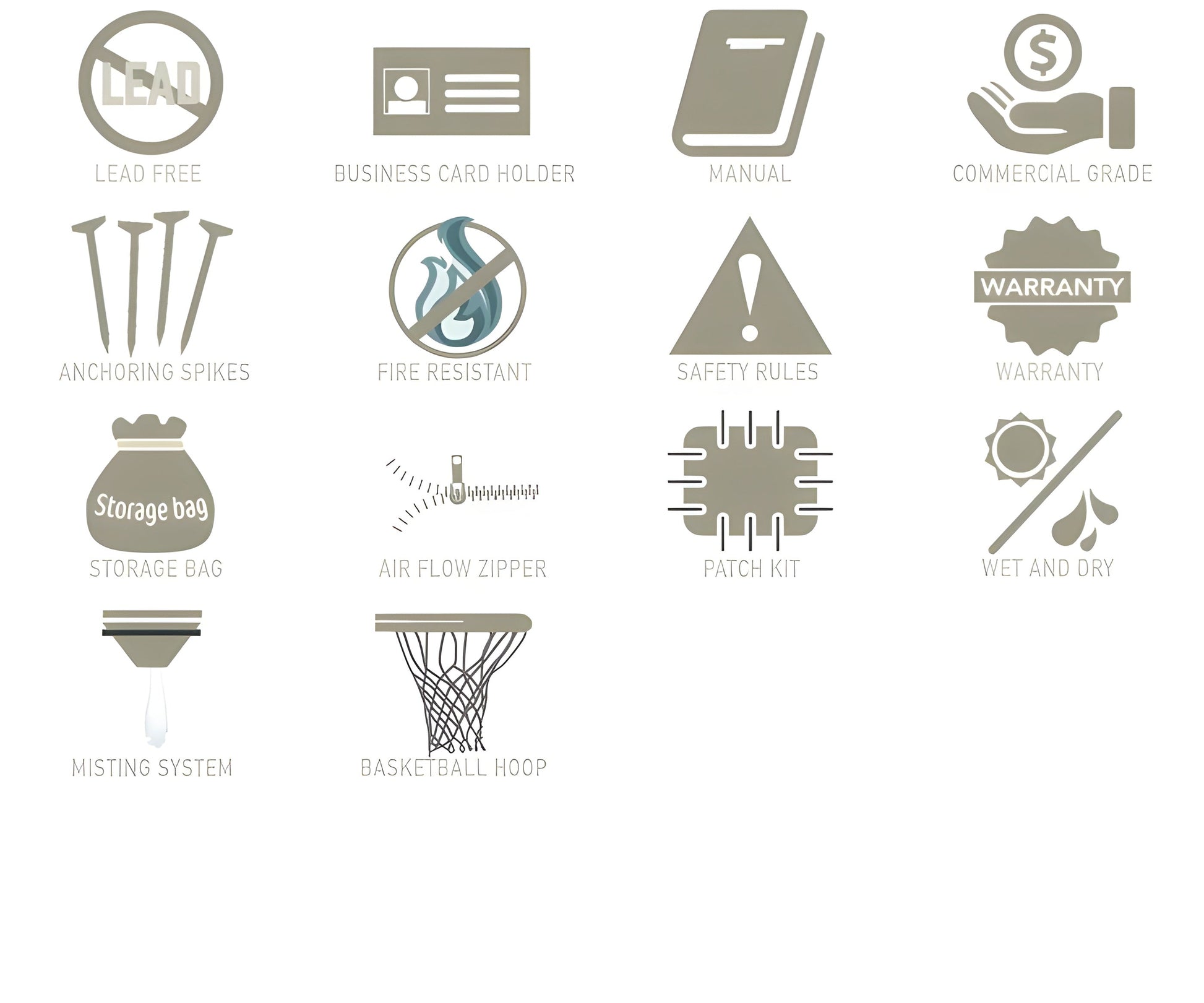 The 5-in-1 combo bounce house is made of lite n strongâ„¢ fire-resistant vinyl for safety, durability and easy portability. This 5-in-1 bouncy house is sure to make any indoor or outdoor event a great success!
