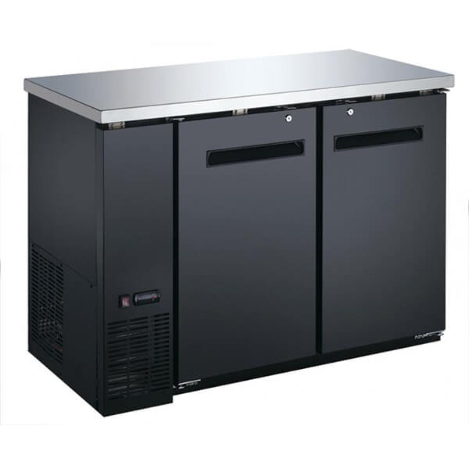 The Omcan 49" Solid Door Back Bar Bottle Cooler is a compact yet high-performance solution for efficient beverage storage.