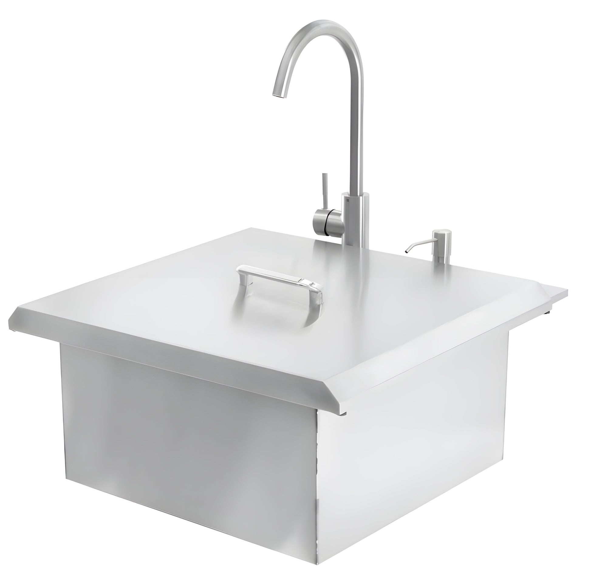 This 21" Outdoor sink from PCM features a hot and cold cuaset with a soap dispenser. It is made of high quality 304 rust resistant stainless steel for long lasting quality. The sink also comes with a cutting board that fits inside the sink and a stainless steel lid to cover the sink when not being used. This sink provides great functionality for your kitchen!