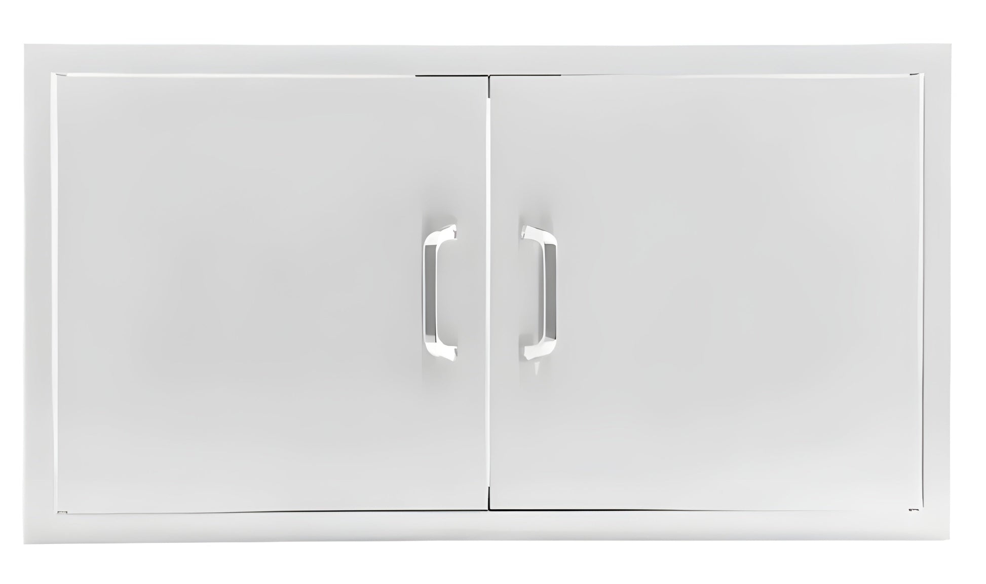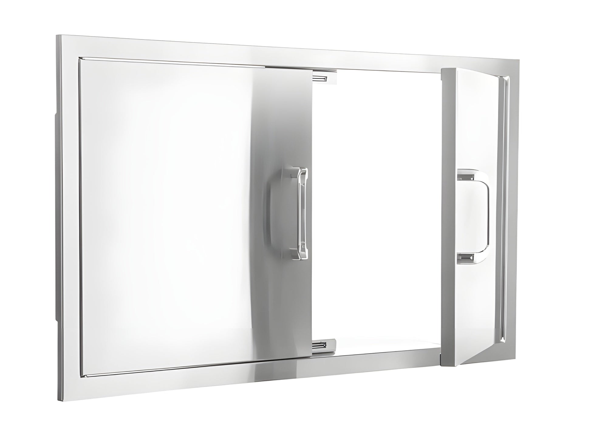 This PCM 40-Inch stainless steel double access door is constructed with a 20 gauge, 304 stainless steel frame and number 4 brushed finish. This unit has flush mounted frame for a streamlined appearance. This double access door is the perfect outdoor kitchen accessory for any outdoor island, providing storage space and access to perform maintainance on your grilling equipment