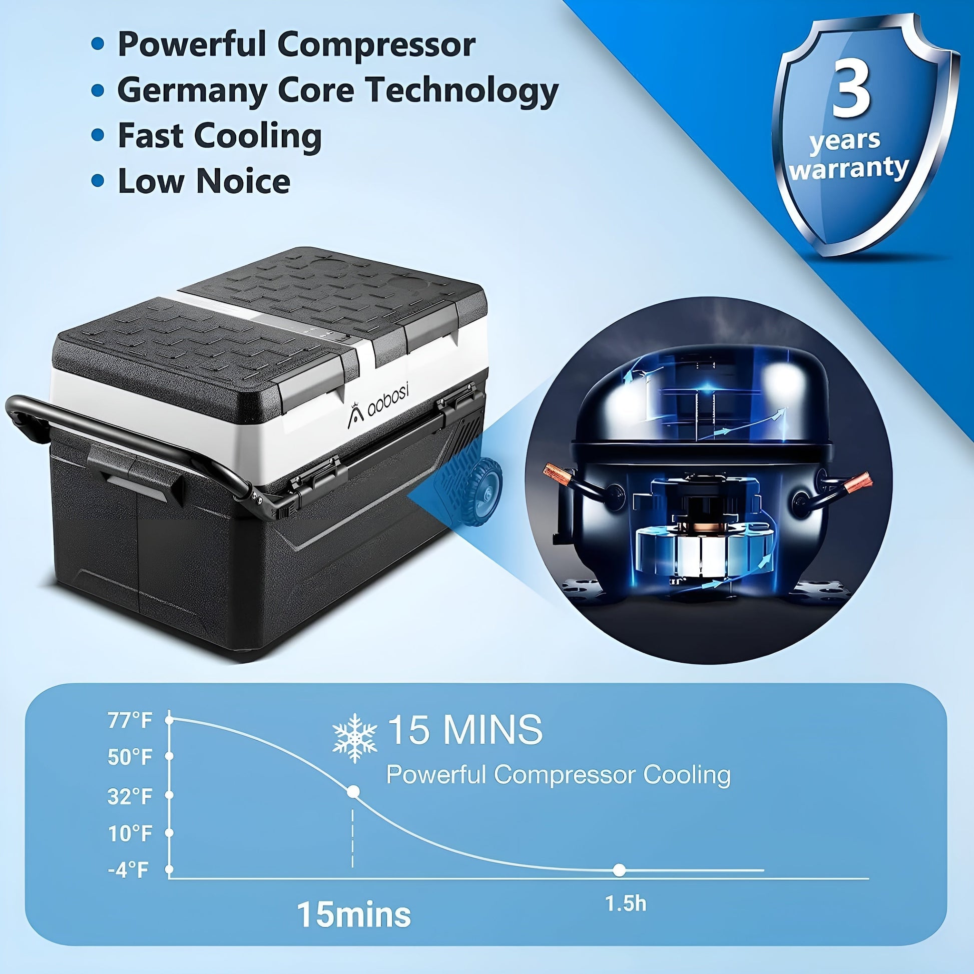 This cooler is designed with shockproof and anti-vibration features to ensure it works well in bumpy conditions, ideal for off-roading or rugged outdoor use.