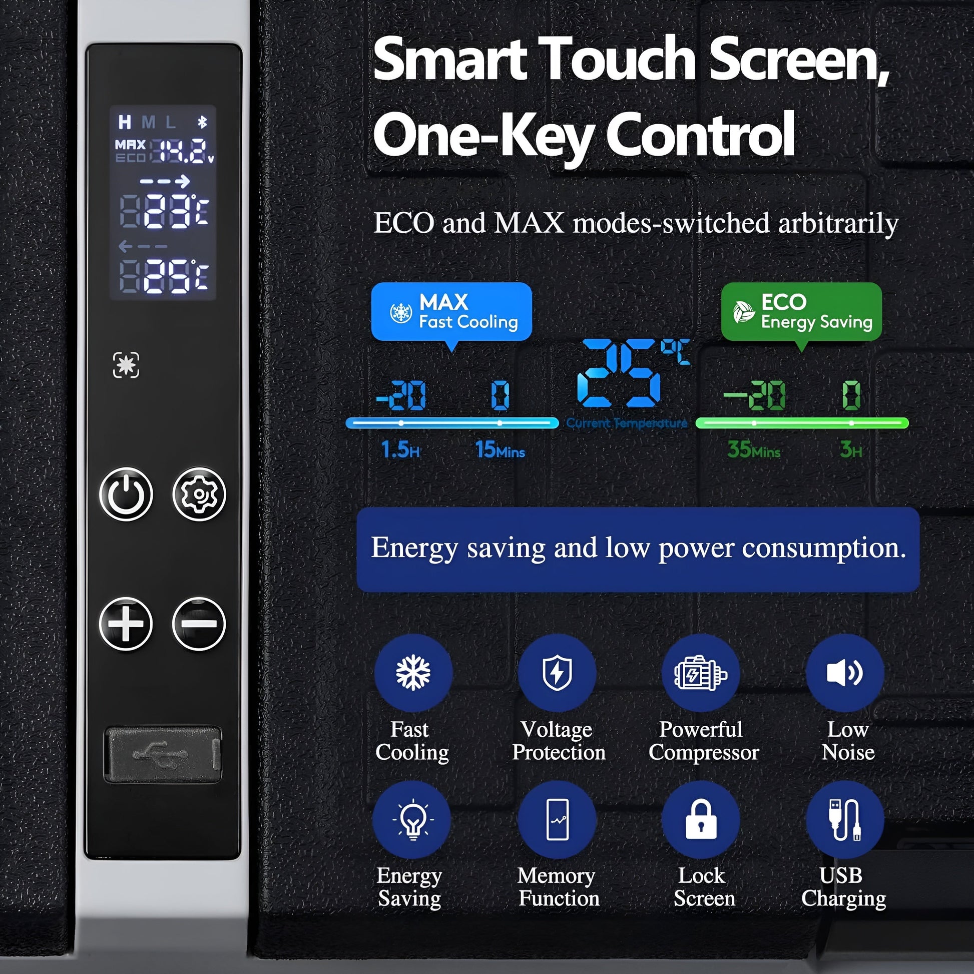 Convenient Digital Controls – The LED display makes it easy to adjust temperatures, and the battery protection system prevents draining your vehicle’s power.