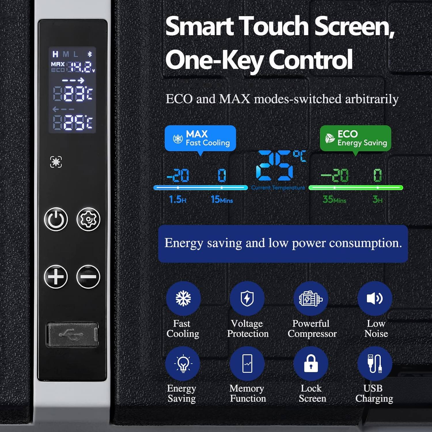 | Special Features | 🥂Powerful Compressor 🥂Unique middle panel control display, easy to operate 🥂Large Capacity 45 Quart(42L) 🥂 Low Noise 🥂With Cutting Board 🥂Dual Zone Refrigerator 🥂APP&Manual Control 🥂 -4℉(-20℃)-68℉(20℃) Setting 🥂L/M/H Voltage Protection 🥂Max/Eco Cooling Choice 🥂Car/Home Dual-Use 🥂 12/24V DC and 100-240V AC |