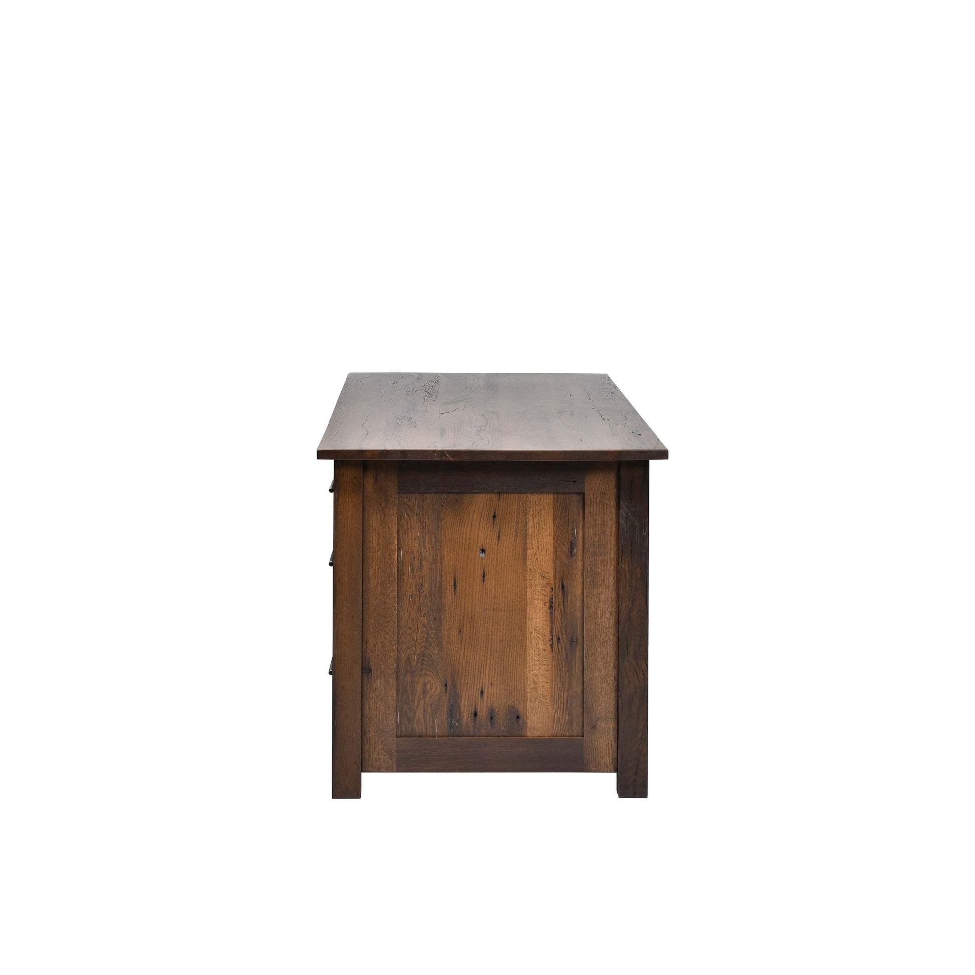 A: A handcrafted solid wood executive desk featuring reclaimed wood for character and durable Amish‑built construction.