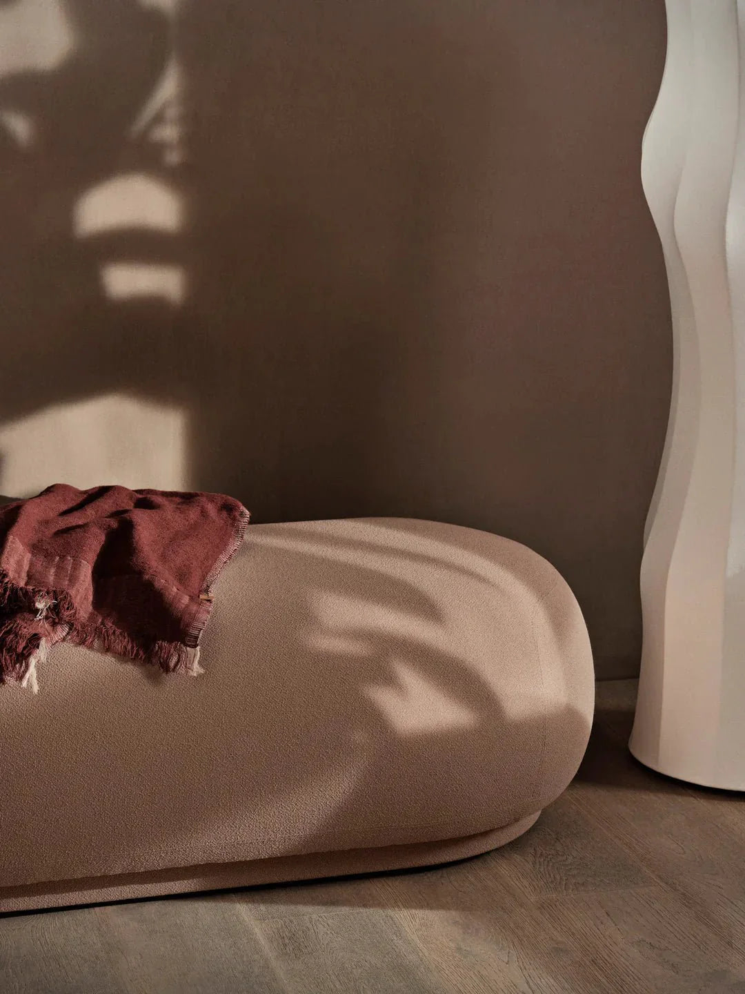 The Ferm Living Rico Ottoman brings that same curvaceous design philosophy from the Rico collection into a multipurpose piece that actually earns its place in your room. Available as a made-to-order piece, you get to choose from their complete range of fabrics including chunky boucle textures, smooth brushed finishes, rich grain weaves, and specialty patterns that coordinate perfectly with other Rico pieces or stand beautifully on their own. At 124cm wide and 69cm deep, this thing is substantial enough to work as extra seating when people come over, but the 41cm height makes it perfect for putting your feet up while watching TV or as an impromptu coffee table that doesn't feel awkward. The organic curves and soft lines give it this welcoming quality that makes every room feel more relaxed and lived-in rather than formal or stuffy.
