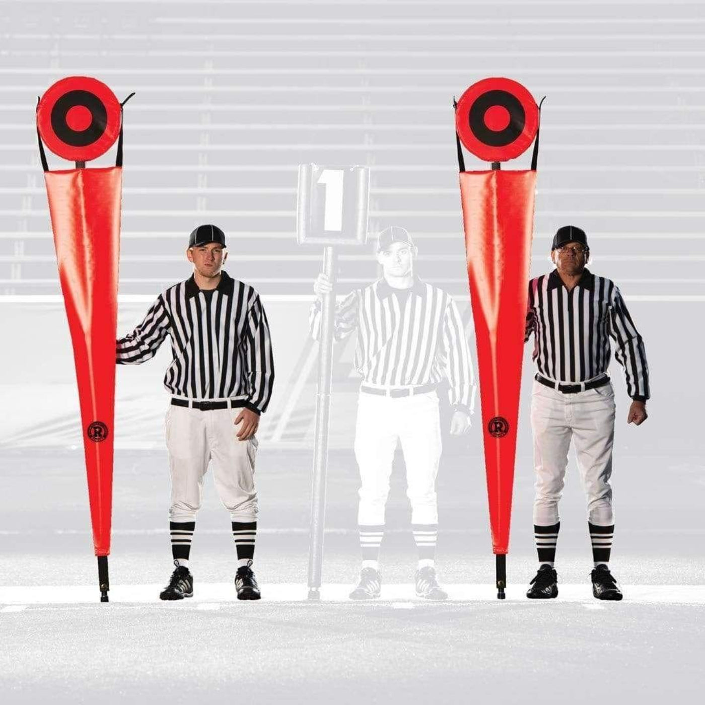 Eye-catching rocket-red vinyl flag and bull's eye on foam-covered pole. Includes vests and a tangle-resistant chain.