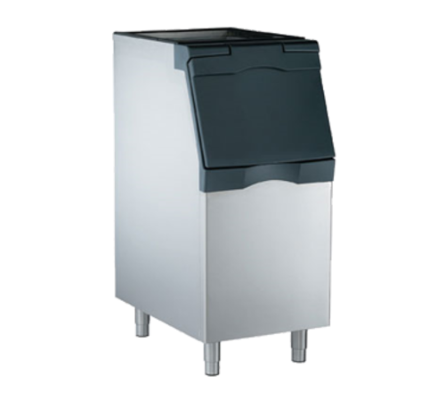 | Specifications | Ice Bin, top-hinged front-opening door, 370 lb application capacity, for top-mounted ice maker, 22" width, metallic finish exterior, toolless removable baffle, polyurethane insulation, polyethylene liner, includes 6" legs, NSF, engineered and assembled in USA |