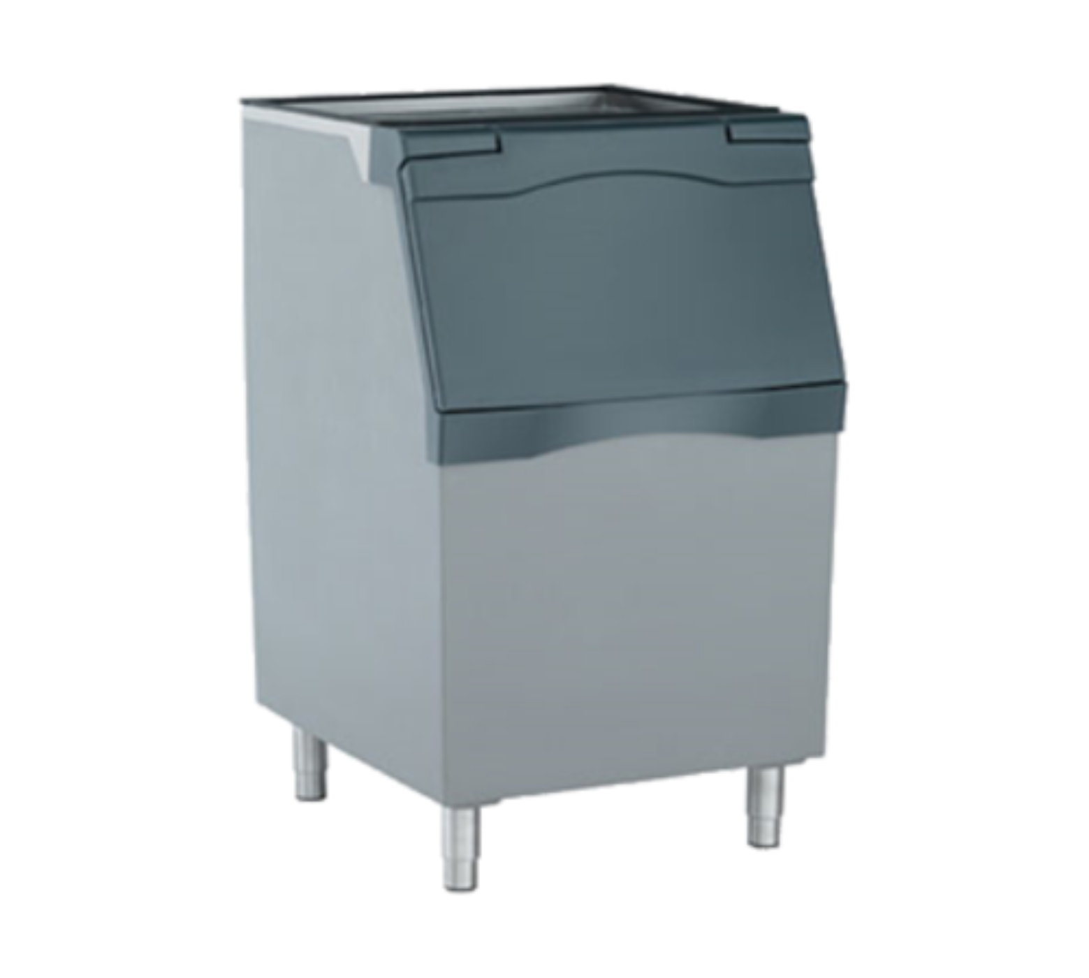 | Specifications | Ice Bin, top-hinged front-opening door, 536 lb application capacity, for top-mounted ice maker, 30" width, rotocast plastic construction, toolless removable baffle, polyurethane insulation, polyethylene liner, includes 6" legs, NSF, engineered and assembled in USA |