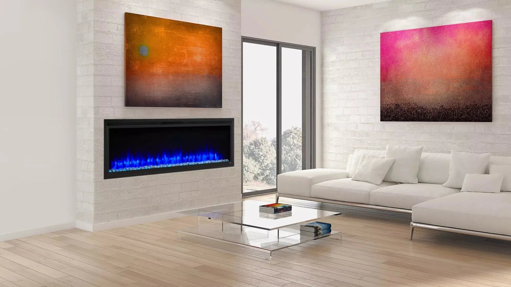 Premium 50" Platinum recessed linear electric fireplace delivers a sleek, modern statement