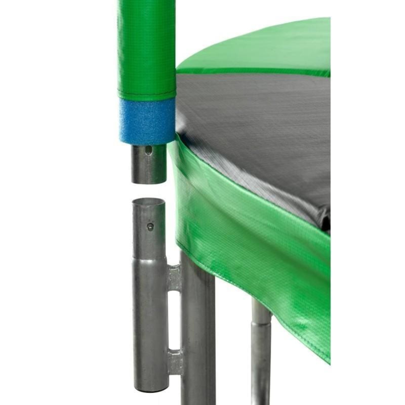 Safety Pad which protects the jumper from falling on the steel frame or getting hurt from the springs contains the best shock absorbent, high density, closed-cell foam that will not absorb water, mildew or lose shape and is constructed of 450g PVC on top, 310g PE on bottom and 3/4" foam thickness EPE. High Quality Safety Enclosure Net ensures maximum safety for your family! Enclosure has the perfect height and dual closure entry with zipper and buckles which gives forth a 100% assurance that youre safe. Features a double zipper so net can be closed from inside and outside. Net features ultra-durability through its 100% premium Terylene, mesh material and extra security by its small and minimal gaps that also gives the net a smooth touch. Net attach to bottom with rope and clips and has special connector on top to keep things in place. Now you can enjoy your jumping experience knowing you are fully protected with this high quality weather-proof enclosure net protecting you from any accident! Waterproof and UV protected Foam Sleeves are for added protection and add color and design to your trampoline!