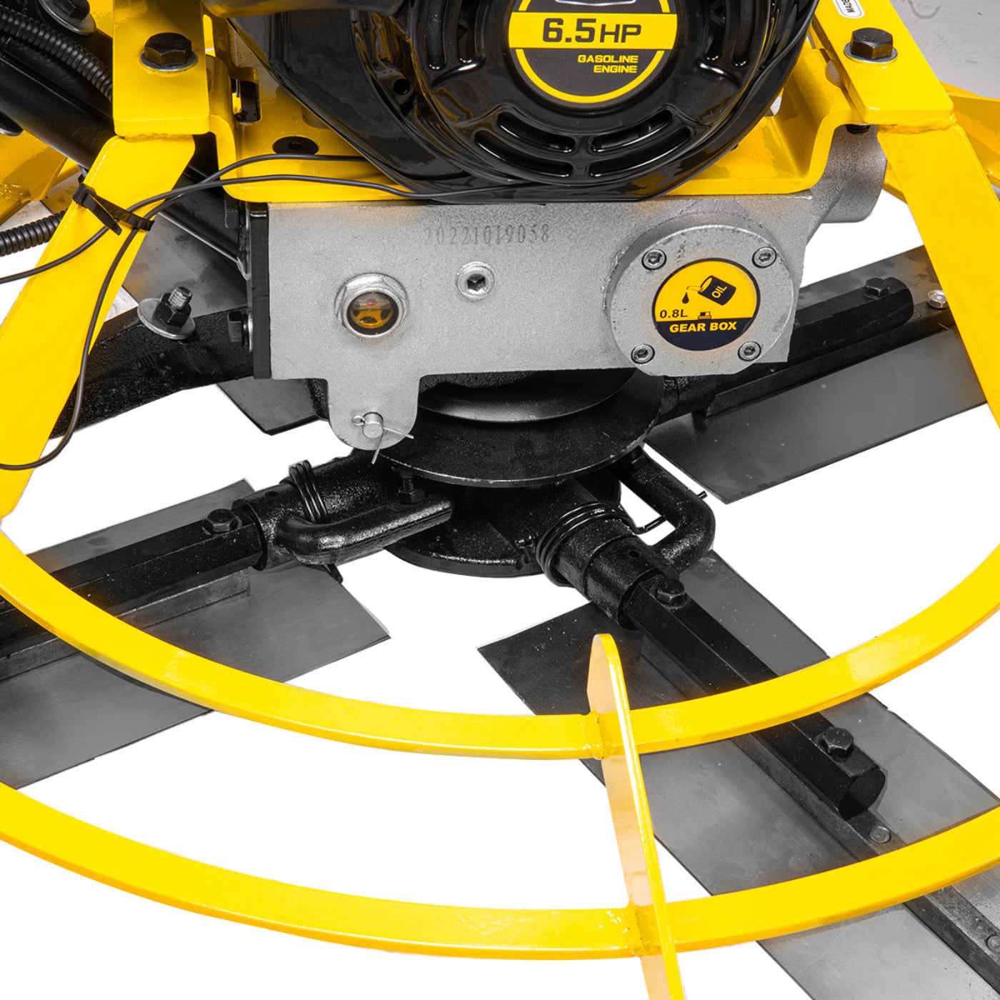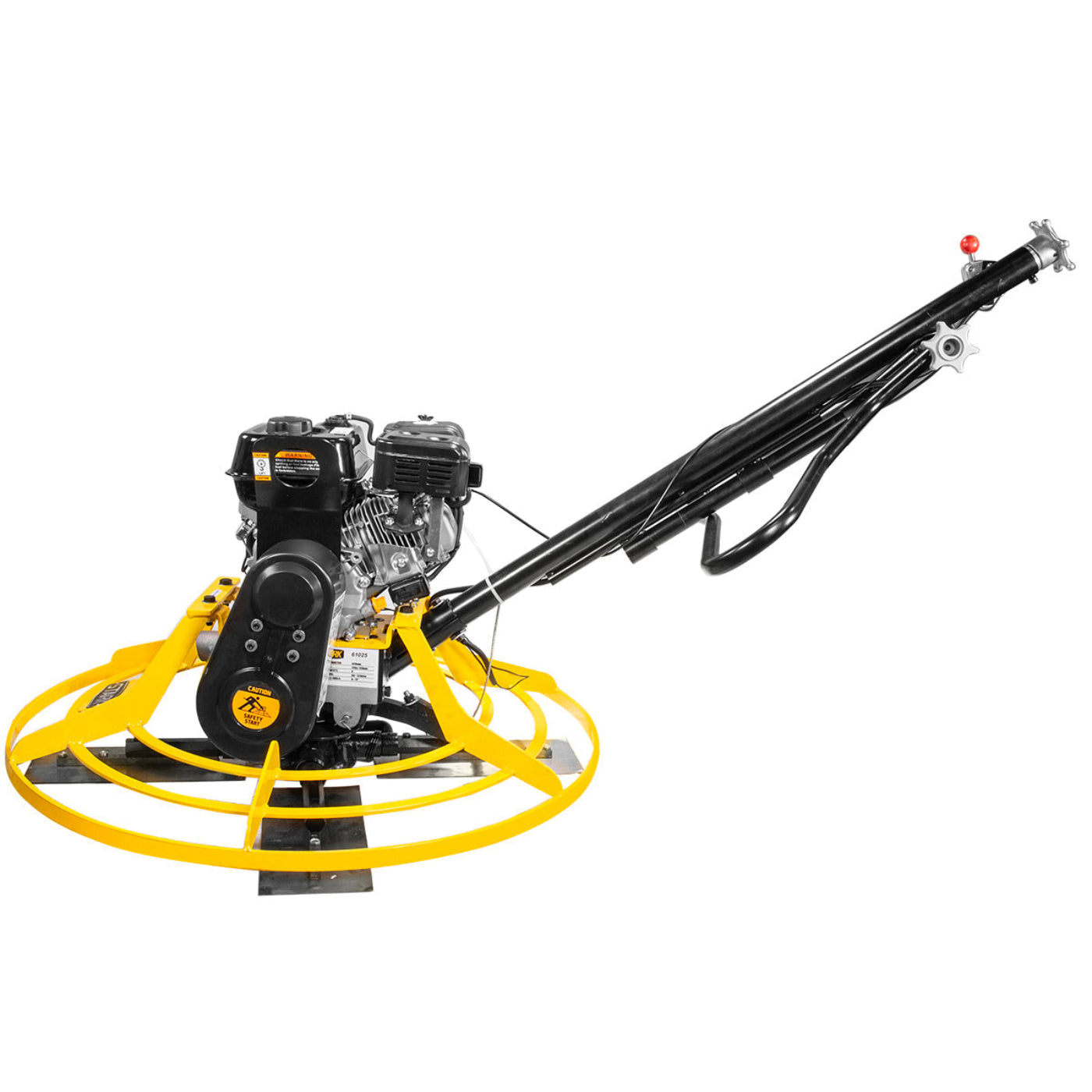 A: This walk-behind trowel features a 5.5HP 196cc gas engine, designed for smoothing and finishing concrete surfaces, with an EPA-certified engine for efficient fuel use and low emissions.