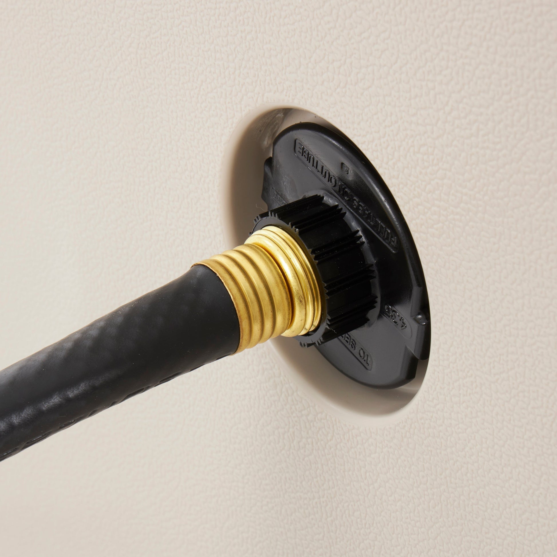 This beautifully designed reel features an automatic rewind reel that is powered by a 12-volt battery and eliminates the need to manually crank your hose back onto the reel. Its Smart Trak technology perfectly guides the hose neatly onto the reel so you never have to worry about it becoming tangled or kinked. With this hose house, you'll receive 2 garden stakes, a 12-volt battery, charger, and a leader hose.