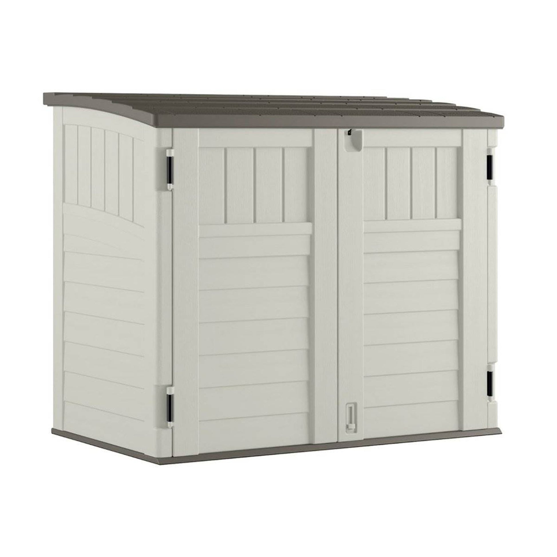 This Suncast Resin Horizontal Outdoor Storage Shed brings all the goodies from your yard and stores them better than you could ever imagine. It has 34 cubic feet of storage capacity and looks beauteous up next to your home, in your garage, or in your backyard. It is constructed of durable, double wall resin, features a 3 door locking system, and has a reinforced floor for heavier items. The easy lift lid and double door access provide easy entry to your things and makes storing look good. Assembly is easy-peasy with bolts and minimal tools to get things up and storing. For a storage solution that would make your dad proud, get this Suncast 34 Cubic Feet Resin Horizontal Outdoor Storage Shed set up in your space.